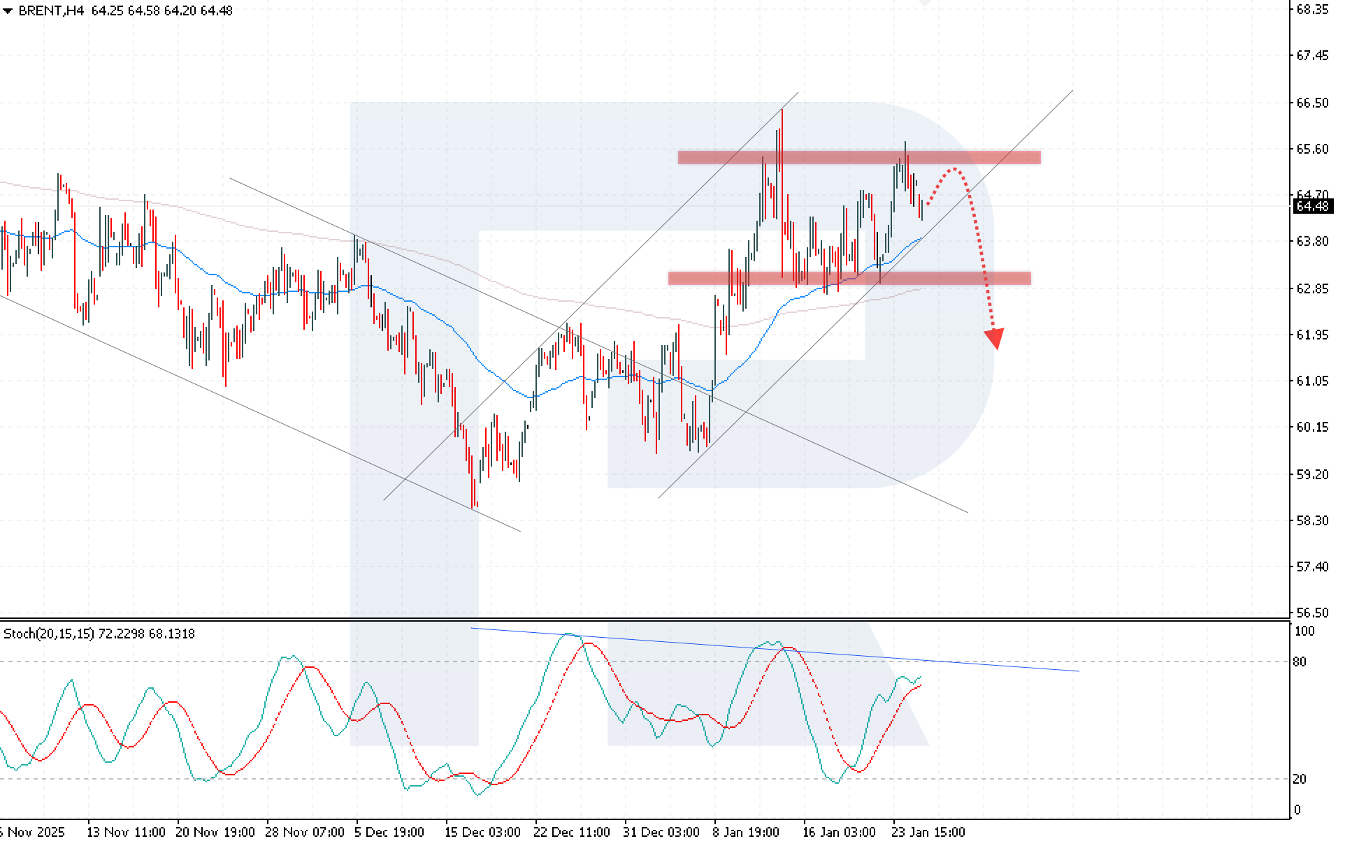 ราคาน้ำมันดิบ Brent ปรับตัวลดลงจากการผสมผสานของสัญญาณทางเทคนิคและปัจจัยพื้นฐานที่อ่อนแรงลง โดยราคาปัจจุบันอยู่ที่ 64.48 USD ดูรายละเอียดเพิ่มเติมได้ในการวิเคราะห์ของเราสำหรับ 27 มกราคม 2026