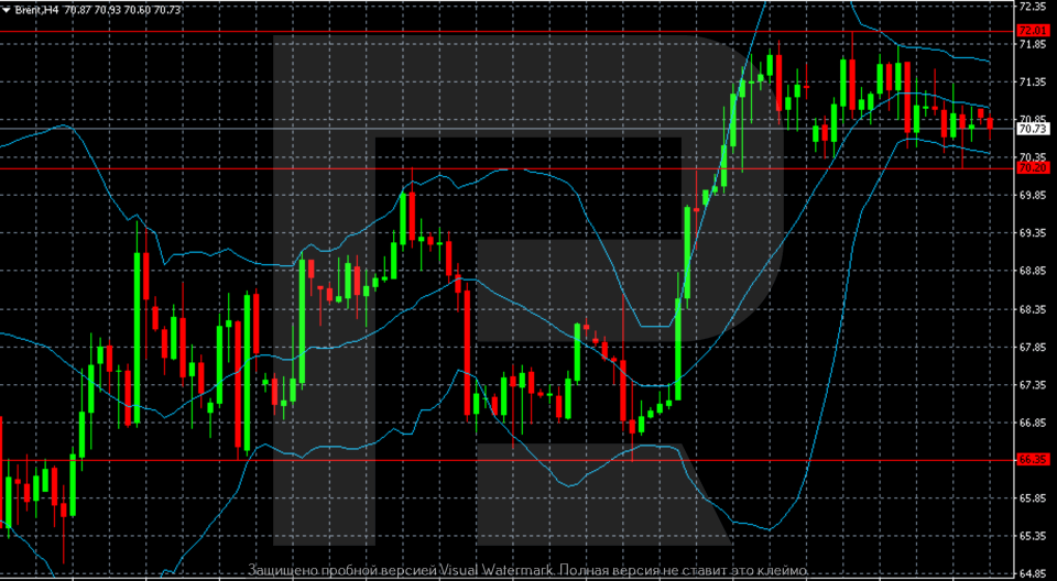 บนกราฟ H4 ราคาน้ำมัน Brent ดีดตัวจากบริเวณ 66.35 ก่อตัวเป็นแรงส่งขาขึ้นที่แข็งแกร่ง ทะลุเหนือ 70.20 และแตะจุดสูงสุดใกล้ 72.00 การปรับตัวขึ้นครั้งนี้มาพร้อมกับการขยายตัวของ Bollinger Bands ซึ่งส่งสัญญาณถึงความผันผวนที่เพิ่มขึ้น