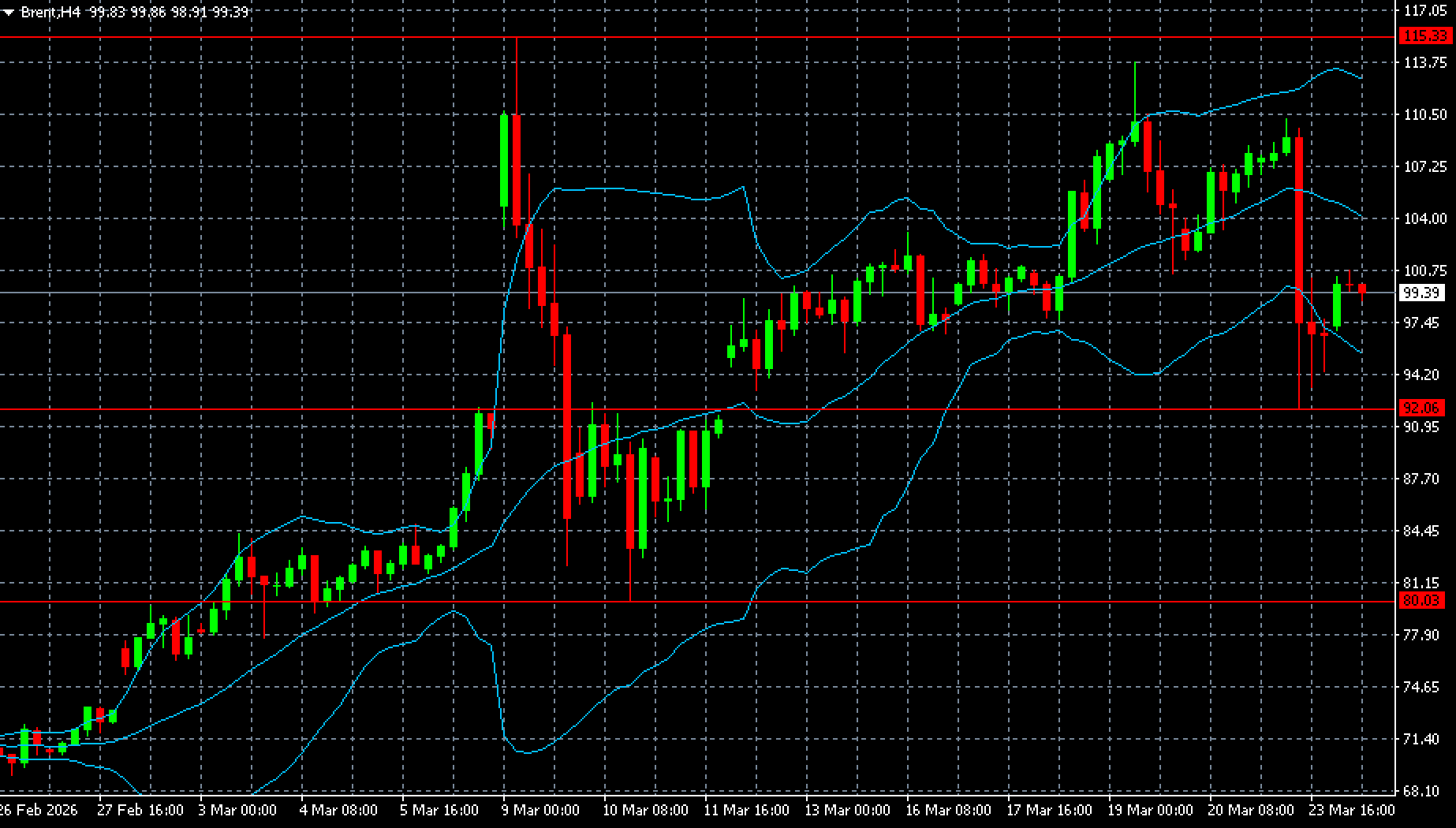 ราคาน้ำมัน Brent ฟื้นตัวบางส่วนจากการขาดทุนและกลับมาอยู่ที่ 99.40 USD การเจรจาเกี่ยวกับอิหร่านยังไม่ได้รับการยืนยัน ดูรายละเอียดเพิ่มเติมได้ในการวิเคราะห์ของเราสำหรับ 24 มีนาคม 2026