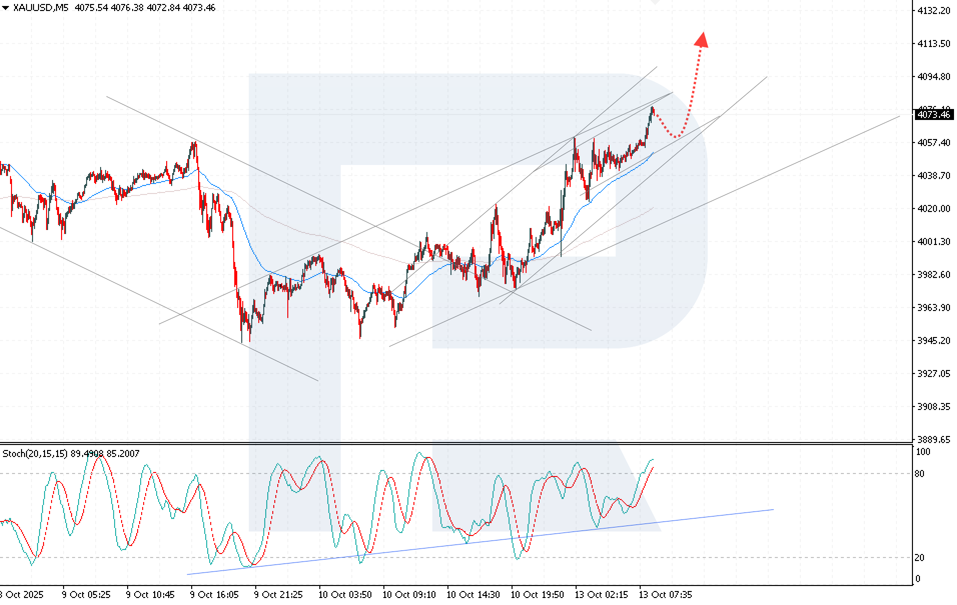 สัญญาณสนับสนุนเพิ่มเติมสำหรับแนวโน้มขาขึ้นมาจากอินดิเคเตอร์ Stochastic Oscillator ซึ่งยังคงอยู่เหนือระดับ 80 ยืนยันแรงโมเมนตัมเชิงบวกที่แข็งแกร่งและโอกาสของการปรับขึ้นต่อเนื่อง การยืนเหนือระดับ 4,075 ดอลลาร์อย่างมั่นคงจะเป็นการยืนยันสัญญาณขาขึ้น