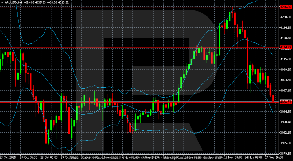 บนกราฟ H4 ของทองคำ (XAUUSD) โครงสร้างราคาได้เปลี่ยนจากขาขึ้นเป็นการปรับลงแบบค่อยเป็นค่อยไป หลังจากการพุ่งขึ้นแรงสู่โซน 4,240–4,246 ราคาทองคำได้สร้างจุดสูงระยะสั้นและกลับตัวลง บริเวณระดับ 4,145 ราคาถูกปฏิเสธหลายครั้ง ทำให้ระดับนี้กลายเป็นแนวต้านสำคัญที่แรงขายเริ่มรุนแรงขึ้น