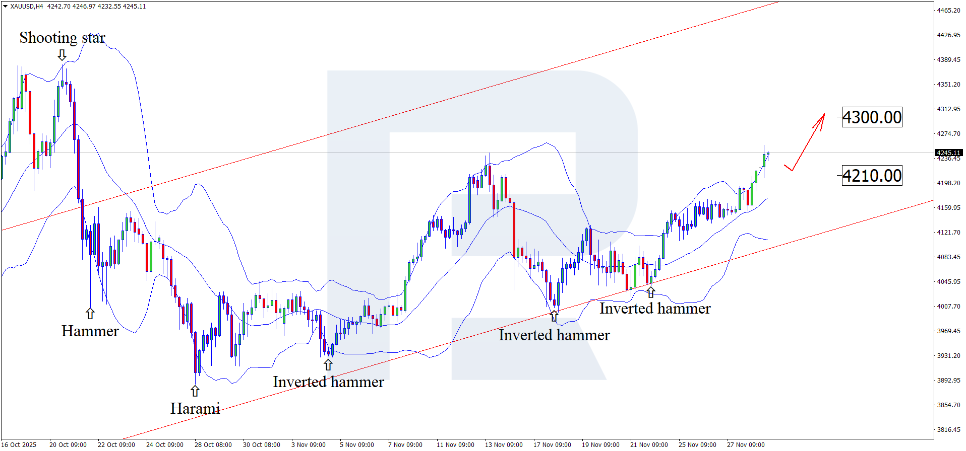 ทองคำยังคงแข็งแกร่ง โดยราคาทะลุระดับจิตวิทยาที่ 4,200 ดอลลาร์ และกำลังซื้อขายบริเวณ 4,240 ดอลลาร์ ติดตามรายละเอียดเพิ่มเติมได้ในบทวิเคราะห์สำหรับ 1 ธันวาคม 2025