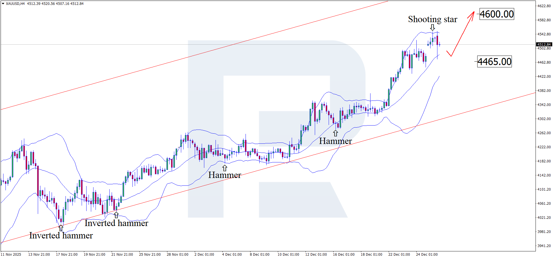 ในขณะเดียวกัน การวิเคราะห์ทางเทคนิค XAUUSD สำหรับวันนี้ยังพิจารณาถึงสถานการณ์ทางเลือก ซึ่งราคาอาจขยายการปรับตัวขึ้นต่อไปสู่ระดับ 4,600 USD โดยไม่ทดสอบแนวรับก่อน