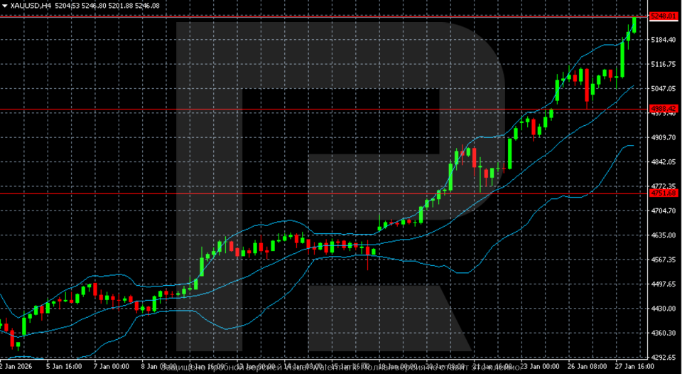 ทองคำ (XAUUSD) ยังคงปรับตัวขึ้นต่อเนื่อง โดยได้รับแรงหนุนจากความต้องการสินทรัพย์ปลอดภัยที่แข็งแกร่งและความเสี่ยงในระดับสูง การคาดการณ์ทองคำ (XAUUSD) สำหรับวันนี้, 28 มกราคม 2026, ไม่ตัดความเป็นไปได้ของการปรับตัวขึ้นสู่ระดับ 5,280