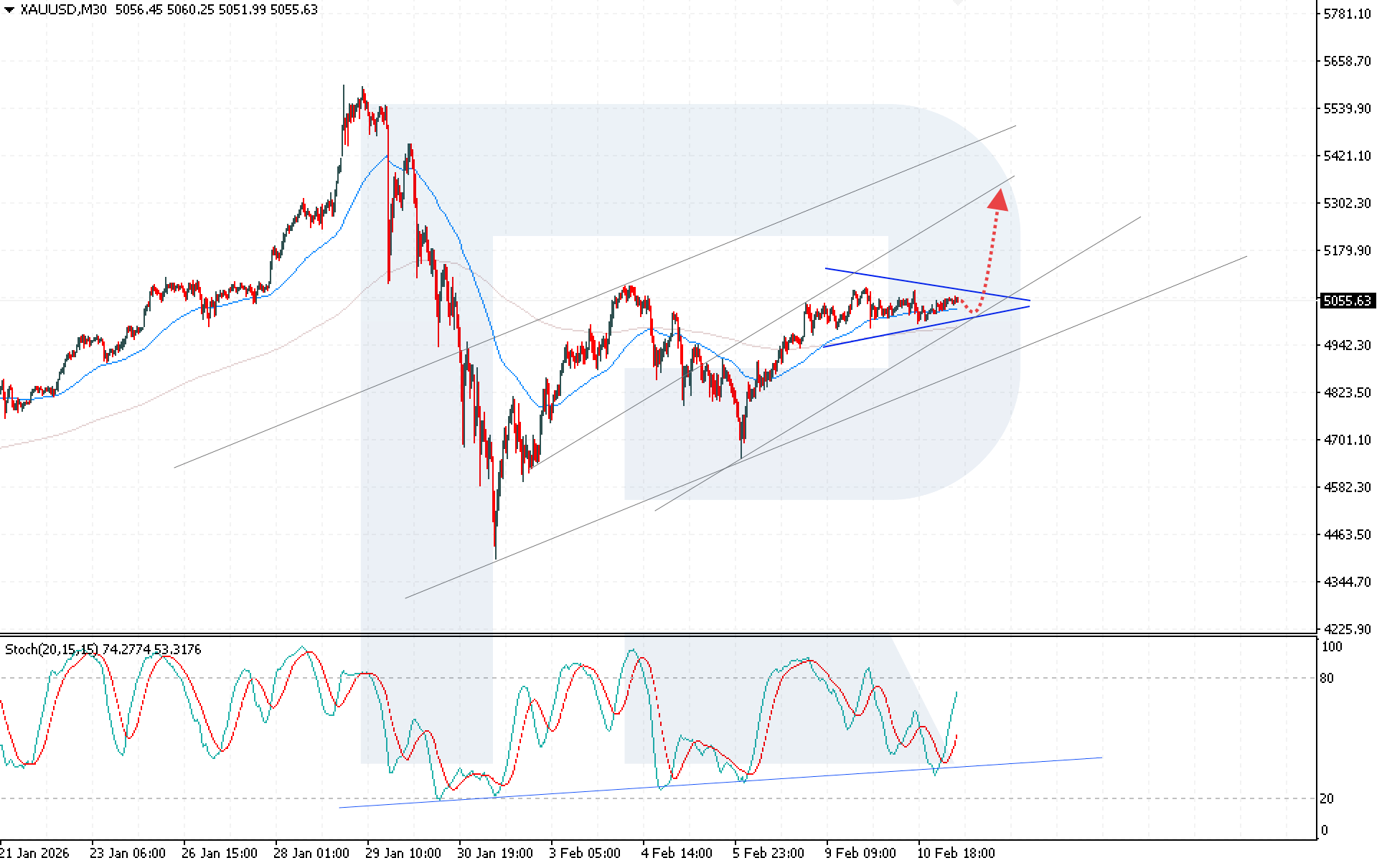 ราคาทองคำ (XAUUSD) ยังคงอยู่ในช่วงการเติบโตอย่างมั่นคง ท่ามกลางความคาดหวังที่ผ่อนคลายลงเกี่ยวกับนโยบายของธนาคารกลางสหรัฐฯ และข้อมูลเศรษฐกิจมหภาคของสหรัฐฯ ที่อ่อนแอ โดยปัจจุบันเคลื่อนไหวอยู่ที่ 5,055 USD ดูรายละเอียดเพิ่มเติมได้ในการวิเคราะห์ของเราสำหรับ 11 กุมภาพันธ์ 2026