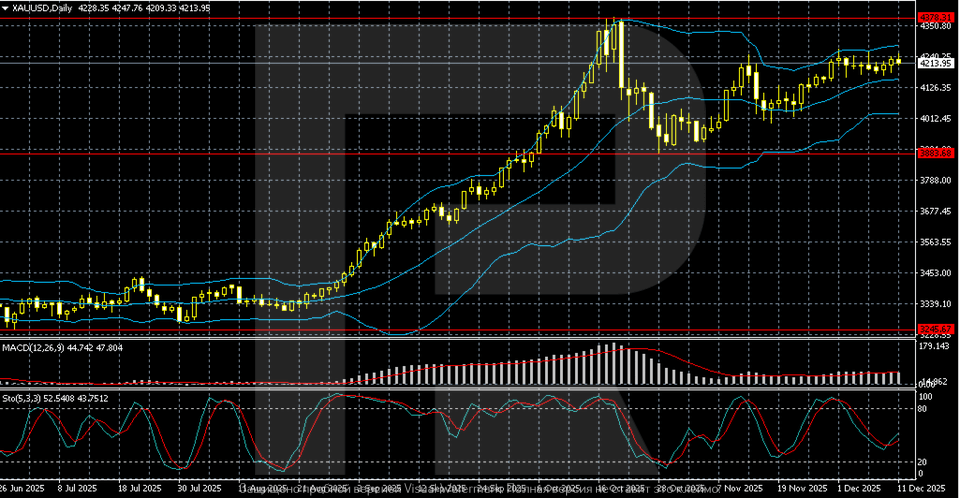 ทองคำ (XAUUSD) ยังคงเคลื่อนไหวในโซนสะสมที่มั่นคงบริเวณ 4,230 ดอลลาร์ต่อออนซ์ ใกล้ระดับสูงสุดของเดือนตุลาคม ราคายังได้รับแรงหนุนจากสัญญาณเชิงผ่อนคลายจากธนาคารกลางสหรัฐ (เฟด) หลังการปรับลดดอกเบี้ยเดือนธันวาคม การปรับเพิ่มคาดการณ์การเติบโตทางเศรษฐกิจของสหรัฐ และการปรับลดคาดการณ์เงินเฟ้อปี 2025–2026 อีกทั้งยังได้รับแรงซื้อเพิ่มเติมจากความเสี่ยงทางภูมิรัฐศาสตร์ เช่น การสกัดเรือต้องห้ามนอกชายฝั่งเวเนซุเอลา และความไม่แน่นอนต่อการเจรจาความขัดแย้งระหว่างประเทศที่ยังดำเนินอยู่