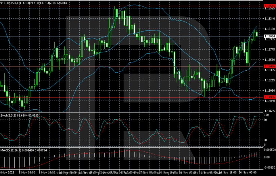 คู่เงิน EURUSD ปรับตัวขึ้นสู่ 1.1601 กิจกรรมในตลาดจะเบาบางลงเนื่องด้วยวันขอบคุณพระเจ้า (Thanksgiving Day) อ่านรายละเอียดเพิ่มเติมได้ในบทวิเคราะห์สำหรับ 27 พฤศจิกายน 2025