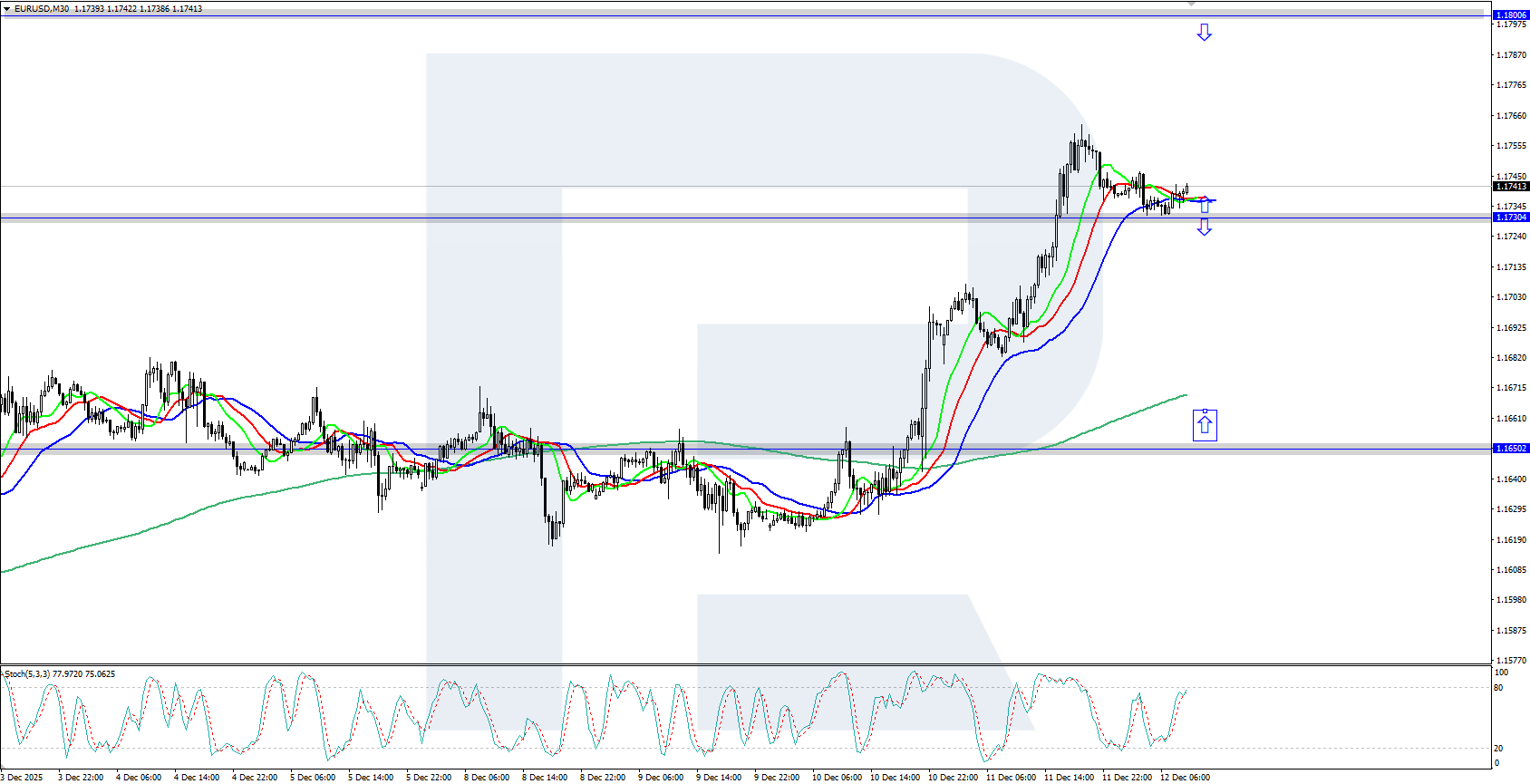 อัตราแลกเปลี่ยน EURUSD ปรับตัวขึ้นเหนือระดับ 1.1700 โดยเงินยูโรได้รับแรงหนุนจากการปรับลดอัตราดอกเบี้ยของเฟด และอัตราเงินเฟ้อที่ชะลอตัวลงในยูโรโซน รายละเอียดเพิ่มเติม — ในบทวิเคราะห์สำหรับ 12 ธันวาคม 2025