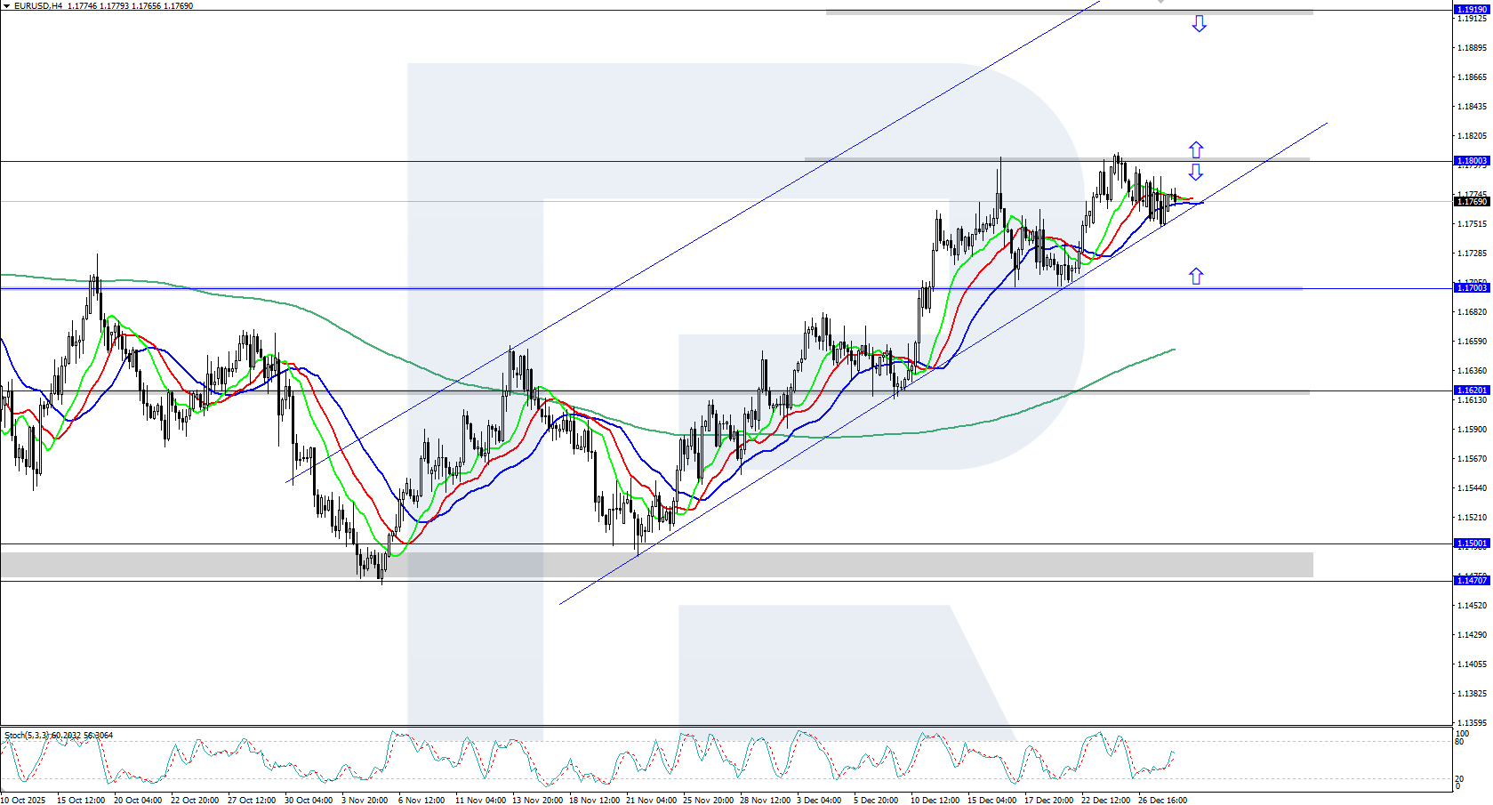 คู่เงิน EURUSD ซื้อขายอยู่ใกล้ระดับ 1.1800 ซึ่งเป็นระดับใกล้จุดสูงสุดของปี ท่ามกลางมุมมองนโยบายการเงินที่แตกต่างกันระหว่างธนาคารกลางยุโรป (ECB) และธนาคารกลางสหรัฐ (Fed) รายละเอียด — ในการวิเคราะห์ของเราสำหรับ 30 ธันวาคม 2025
