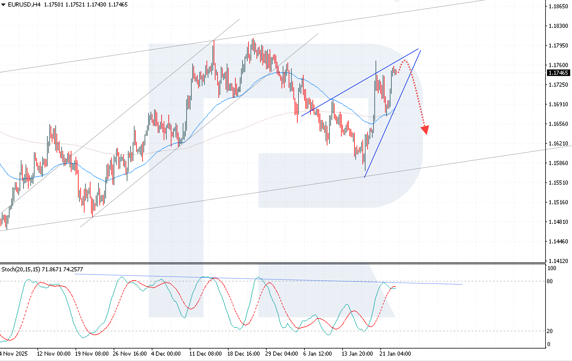 คู่เงิน EURUSD เข้าสู่ช่วงการปรับฐานหลังจากการปรับตัวขึ้นอย่างรุนแรง โดยข้อมูลเศรษฐกิจมหภาคของสหรัฐฯ ที่แข็งแกร่งช่วยหนุนค่าเงินดอลลาร์สหรัฐฯ ขณะที่อัตราแลกเปลี่ยนปัจจุบันอยู่ที่ 1.1746 ดูรายละเอียดเพิ่มเติมได้ในการวิเคราะห์ของเราสำหรับ 23 มกราคม 2026