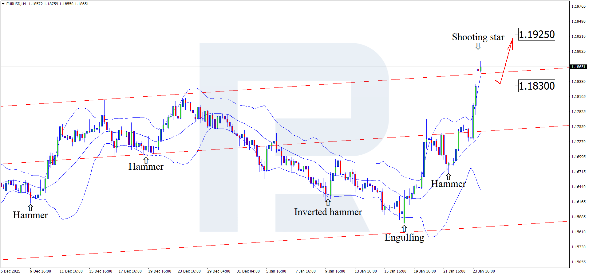 เงินยูโรยังคงแข็งค่าขึ้นก่อนการกล่าวสุนทรพจน์ของประธานธนาคารกลางเยอรมนี (Deutsche Bundesbank) โดยอัตรา EURUSD ปัจจุบันอยู่ที่ระดับ 1.1865 ดูรายละเอียดเพิ่มเติมได้ในการวิเคราะห์ของเราสำหรับ 26 มกราคม 2026