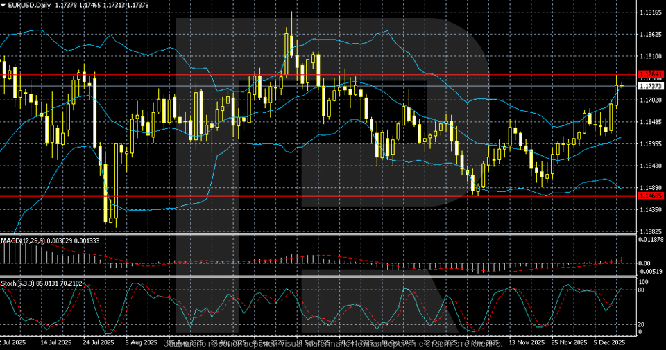 คู่เงิน EURUSD ปิดสัปดาห์ใกล้ระดับ 1.1700 ทำจุดสูงสุดใหม่ของเดือนตุลาคม ท่ามกลางแรงกดดันต่อเนื่องต่อดอลลาร์สหรัฐ ความอ่อนแอของ USD เกิดขึ้นหลังการตัดสินใจของเฟดในเดือนธันวาคม และสัญญาณที่ผ่อนคลายมากกว่าที่คาดจาก Jerome Powell: การขึ้นดอกเบี้ยถูกตัดออกจากทางเลือก และประมาณการของเฟดยังคงชี้เพียงการปรับลดดอกเบี้ย 1 ครั้งในปี 2026 แรงกดดันเพิ่มเติมมาจากจำนวนผู้ขอรับสวัสดิการว่างงานที่เพิ่มขึ้น และอัตราผลตอบแทนที่ลดลงซึ่งถูกขับเคลื่อนโดยการที่เฟดเข้าซื้อพันธบัตรรัฐบาลสหรัฐระยะสั้น