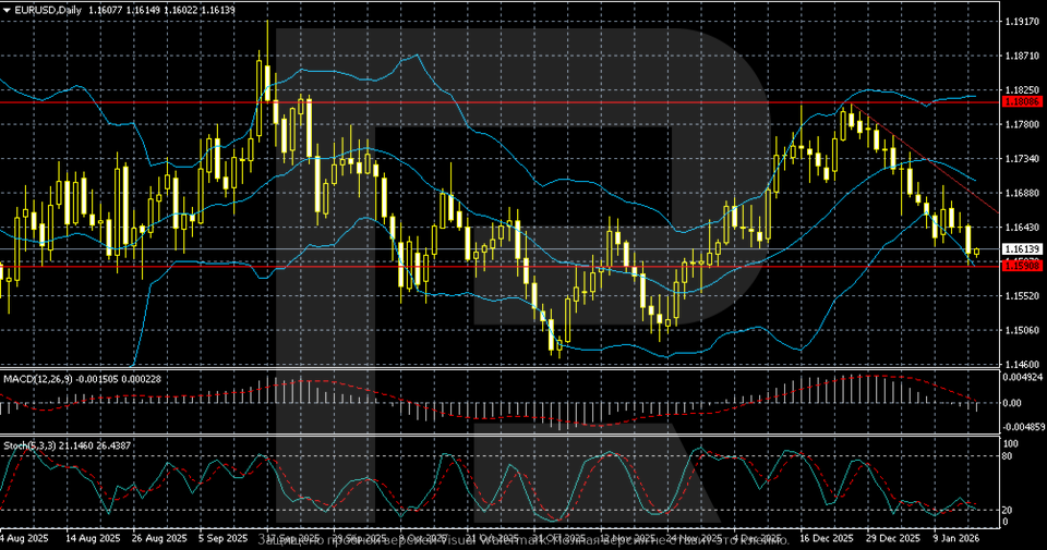 ภาพทางเทคนิคยังคงเป็นขาลงในระดับปานกลาง หลังจากความพยายามล้มเหลวในการยืนเหนือโซน 1.1800–1.1820 ในเดือนธันวาคม คู่เงินเข้าสู่การปรับตัวลงอย่างต่อเนื่องภายในช่องขาลง ราคาอยู่ต่ำกว่าเส้นกึ่งกลางของ Bollinger Bands; MACD อยู่ในแดนลบ และ Stochastic Oscillator อยู่ในโซนล่างโดยยังไม่เกิดสัญญาณกลับตัวที่ชัดเจน