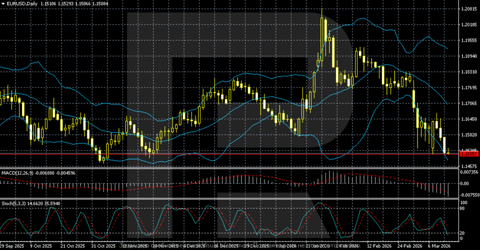 ตั้งแต่ปลายเดือนกุมภาพันธ์ แรงขายเพิ่มขึ้นอย่างต่อเนื่อง โดยราคาค่อย ๆ เคลื่อนเข้าสู่บริเวณ 1.1500–1.1600 ซึ่งปัจจุบันเป็นโซนแนวรับสำคัญ
