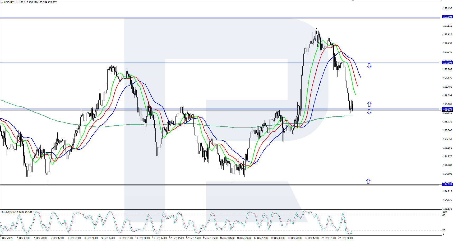 USDJPY ปรับตัวลดลง โดยร่วงเข้าสู่บริเวณใกล้ระดับ 156.00 ท่ามกลางถ้อยแถลงจากญี่ปุ่นเกี่ยวกับความเป็นไปได้ในการใช้มาตรการเพื่อควบคุมความผันผวนของค่าเงิน รายละเอียดเพิ่มเติม — ในบทวิเคราะห์ของเราสำหรับ 23 ธันวาคม 2025.