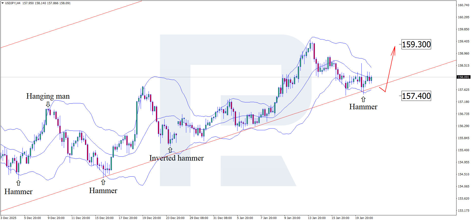 คู่เงิน USDJPY อาจปรับตัวขึ้นต่อหลังจากช่วงการปรับฐาน โดยปัจจุบันราคาอยู่ใกล้ระดับ 158.10 ดูรายละเอียดเพิ่มเติมได้ในการวิเคราะห์ของเราสำหรับ 21 มกราคม 2026