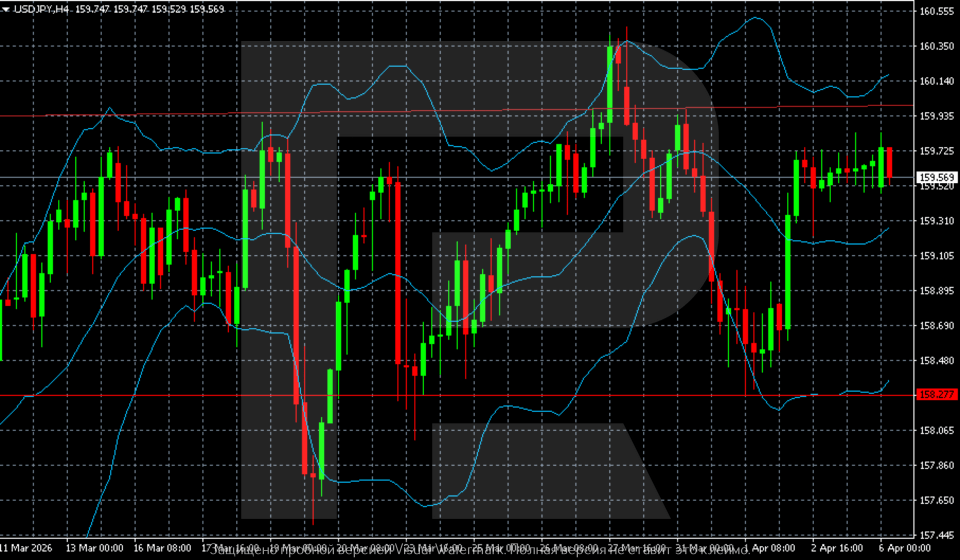 คู่ USDJPY ยังคงอยู่ในสถานะที่แข็งแกร่ง แม้จะมีการปรับฐานในระยะสั้น การคาดการณ์ USDJPY สำหรับวันนี้, 6 เมษายน 2026 ไม่ได้ตัดความเป็นไปได้ของการเคลื่อนไหวในกรอบระหว่าง 158.50 และ 160.00