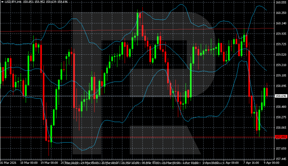 คู่ USDJPY ยังคงอ่อนไหวต่อข่าวอย่างมาก การคาดการณ์ USDJPY สำหรับวันนี้, 9 เมษายน 2026 คาดว่าการเคลื่อนไหวแบบไซด์เวย์ภายในกรอบ 158.00-160.00 จะยังคงดำเนินต่อไป