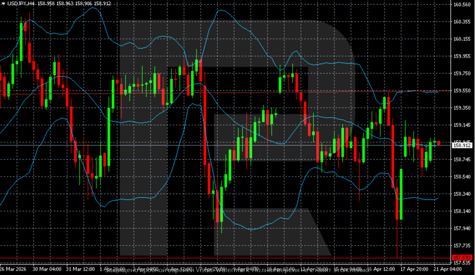 คู่ USDJPY ปรับตัวขึ้นในวันอังคารและกำลังทรงตัว การคาดการณ์ USDJPY สำหรับวันนี้, 21 เมษายน 2026 ไม่ได้ตัดความเป็นไปได้ของการปรับขึ้นอีกครั้งสู่ 159.50 ภายใต้เงื่อนไขที่เอื้ออำนวย