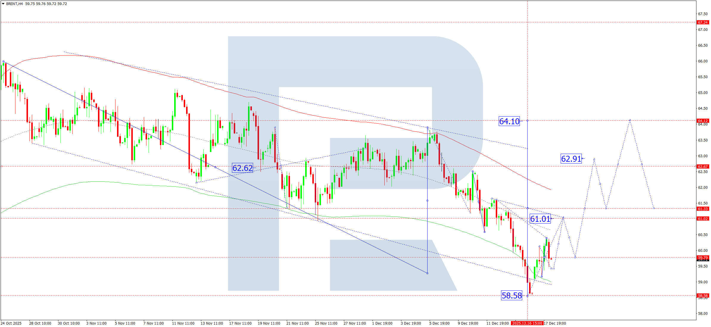 ในเชิงเทคนิค สถานการณ์นี้ได้รับการยืนยันจากโครงสร้างคลื่น Elliott และ Matrix ของคลื่นขาลงที่มีศูนย์กลางการหมุนอยู่ที่ระดับ 62.62 โดยสถานการณ์นี้ถือเป็นโครงสร้างหลักสำหรับ Brent ในคลื่นนี้ ขณะนี้ตลาดกำลังก่อตัวแรงกระตุ้นขาขึ้นไปยังเส้นกึ่งกลางของ Price Envelope ที่ระดับ 61.00 หากระดับนี้ถูกทะลุขึ้น จะเปิดศักยภาพให้ปรับตัวขึ้นต่อไปยังขอบบนที่ระดับ 62.90