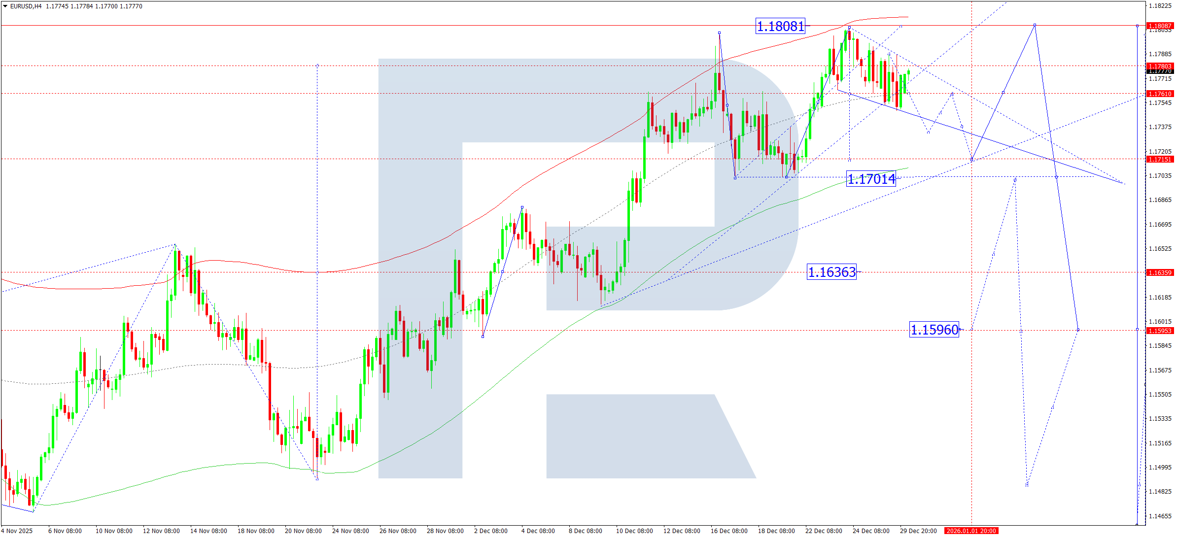 ตัวชี้วัดทางเทคนิคสำหรับการคาดการณ์ EURUSD วันนี้ บ่งชี้ให้พิจารณาความเป็นไปได้ของการปรับตัวลงสู่ระดับ 1.1715