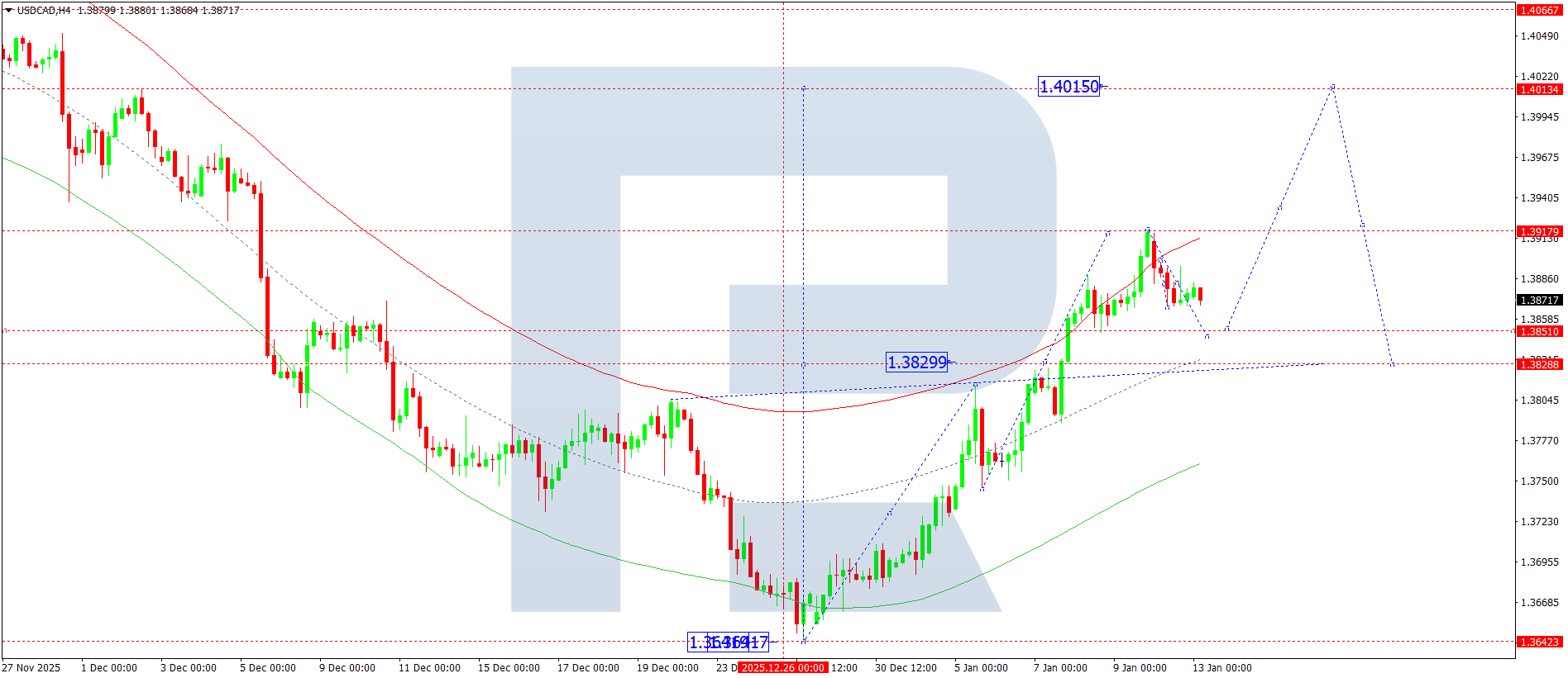 บนกราฟ H4 ของ USDCAD ตลาดได้เสร็จสิ้นคลื่นขาขึ้นไปยังเป้าหมายระยะสั้นที่ระดับ 1.3918 วันนี้ 13 มกราคม 2026 คาดว่าจะเกิดการปรับฐานลงสู่ระดับ 1.3850 หลังจากการปรับฐานนี้เสร็จสิ้น อาจเริ่มต้นคลื่นขาขึ้นรอบใหม่ โดยมีเป้าหมายแรกที่ระดับ 1.4010