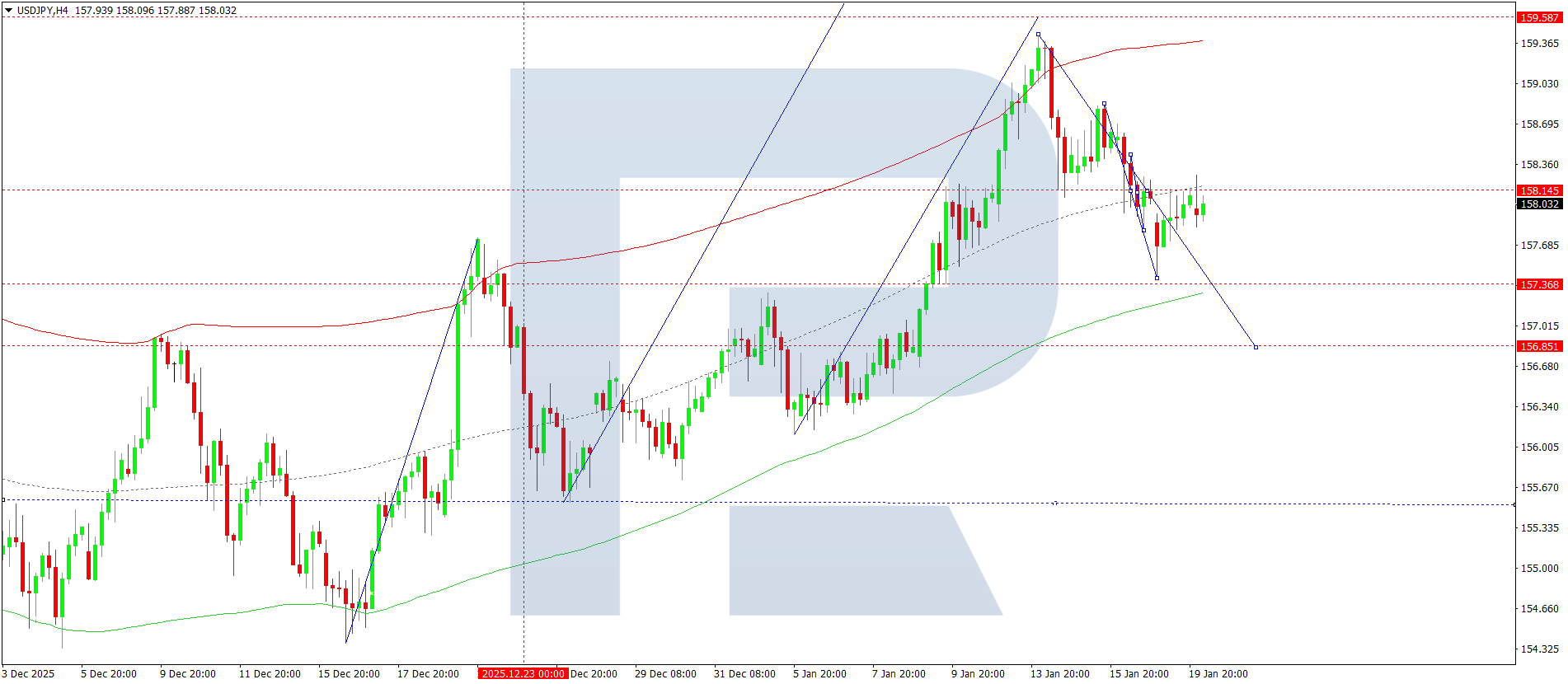 บนกราฟ H4 ของ USDJPY ตลาดได้เสร็จสิ้นคลื่นขาขึ้นไปยังระดับ 157.15 วันนี้ 20 มกราคม 2026 คาดว่าราคาจะย่อตัวลงไปยังระดับ 156.85 ต่อไป ยังมีความเป็นไปได้ของการปรับตัวขึ้นอีกครั้งไปยังระดับ 158.00 และอาจขยายตัวต่อไปยังระดับ 160.00