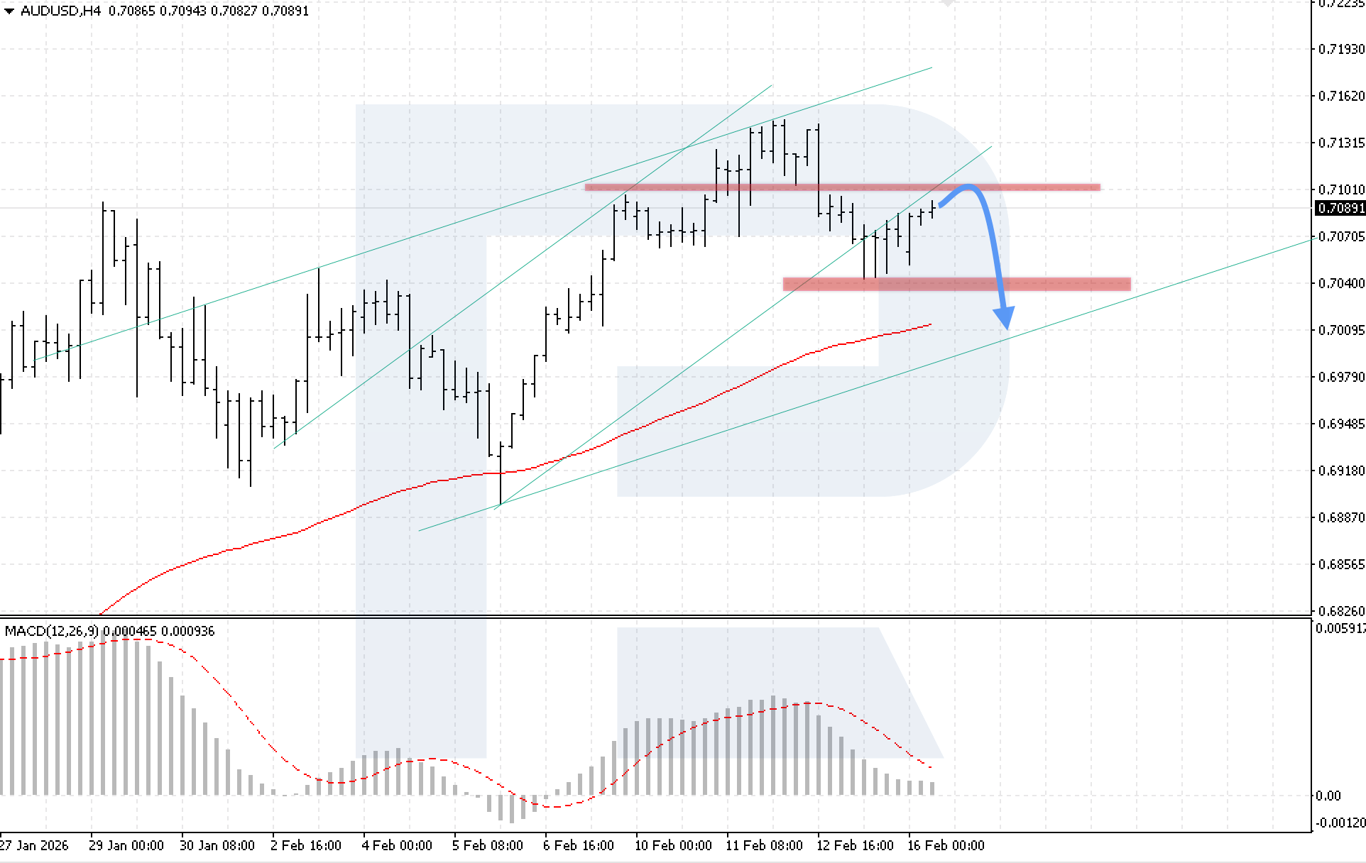 วันนี้ 16 กุมภาพันธ์ 2026 สถานการณ์หลักพิจารณาการพัฒนาแรงกระตุ้นขาลง โดยมีเป้าหมายที่ 0.7005
