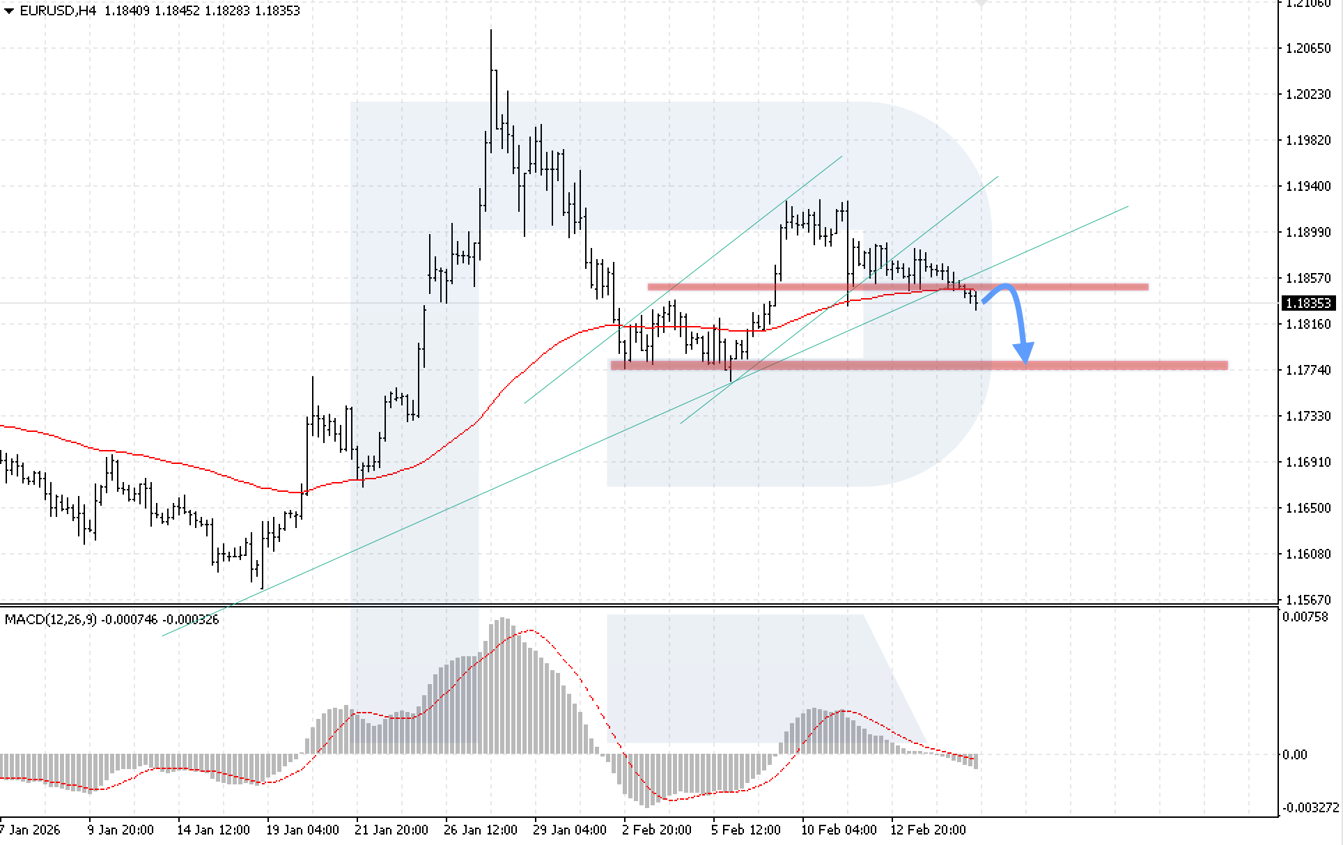 ภาพทางเทคนิคยืนยันสถานการณ์นี้ อินดิเคเตอร์ MACD แสดงการหดตัวของฮิสโตแกรมหลังจากตัดต่ำกว่าเส้นศูนย์ ซึ่งส่งสัญญาณถึงการเพิ่มขึ้นของโมเมนตัมขาลง เงื่อนไขสำคัญสำหรับการปรับตัวลงต่อเนื่องคือการยืนราคาอย่างมั่นคงต่ำกว่า 1.1815