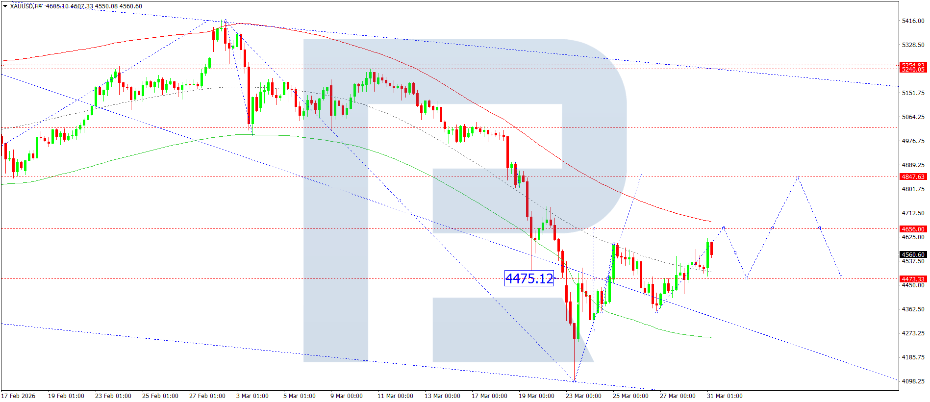 บนกราฟ H4 ของ XAUUSD ตลาดได้ทะลุขึ้นเหนือ 4,500 และยังคงพัฒนาคลื่นขาขึ้นไปยัง 4,656 วันนี้ 31 มีนาคม 2026 คาดว่าราคาจะไปถึงระดับนี้ จากนั้นจะพิจารณาการก่อตัวของช่วงการแกว่งตัวสะสมเหนือระดับดังกล่าว หากทะลุขึ้น จะเปิดศักยภาพของการปรับตัวขึ้นไปยัง 4,848 และอาจต่อเนื่องไปยัง 4,855 ในทางกลับกัน หากทะลุลง อาจเกิดการปรับตัวลงไปยัง 4,500