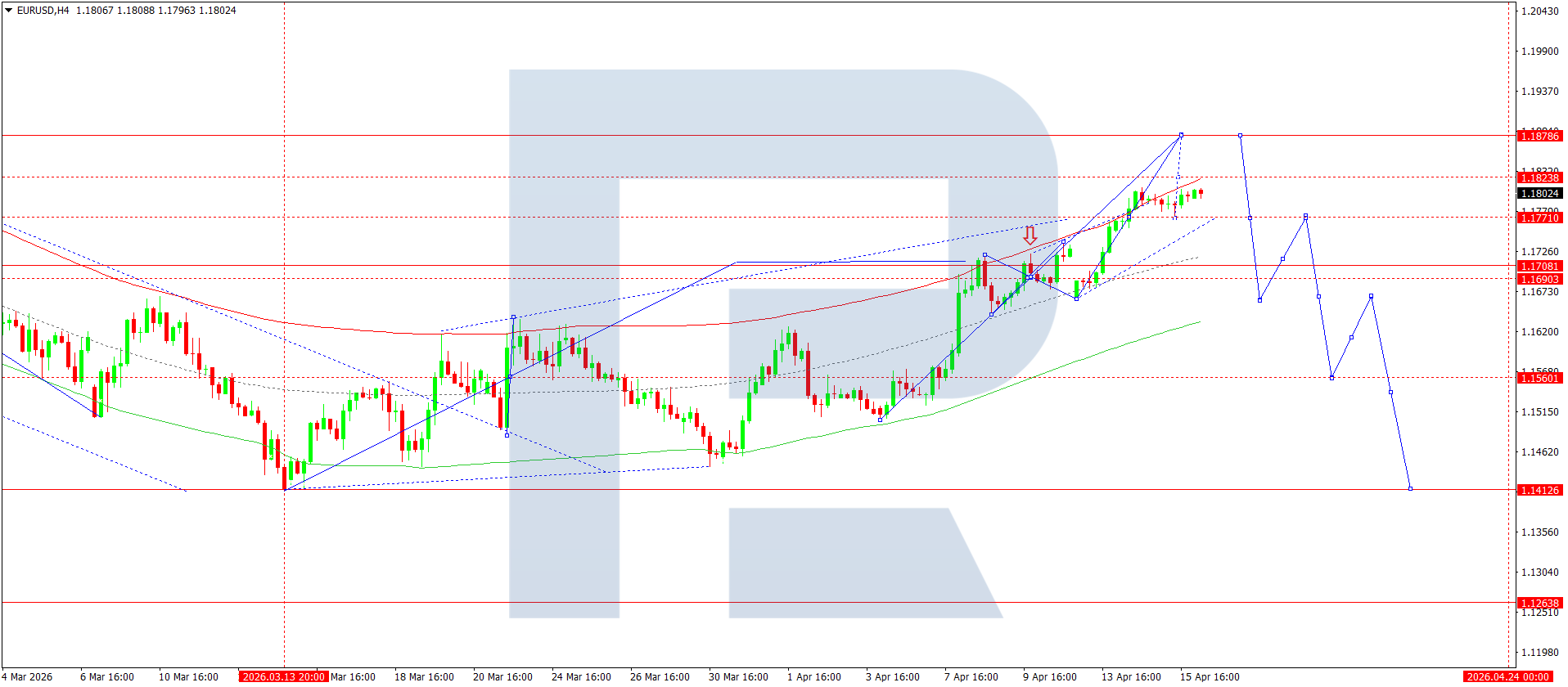 บนกราฟ H4 ของคู่เงิน EURUSD ตลาดได้ก่อตัวช่วงการแกว่งตัวสะสมรอบระดับ 1.1770 วันนี้ 16 เมษายน 2026 คาดว่าจะปรับตัวขึ้นไปที่ 1.1828 พร้อมโอกาสที่แนวโน้มจะขยายต่อไปยัง 1.1878 หลังจากนั้นอาจเกิดคลื่นขาลงไปที่ 1.1700