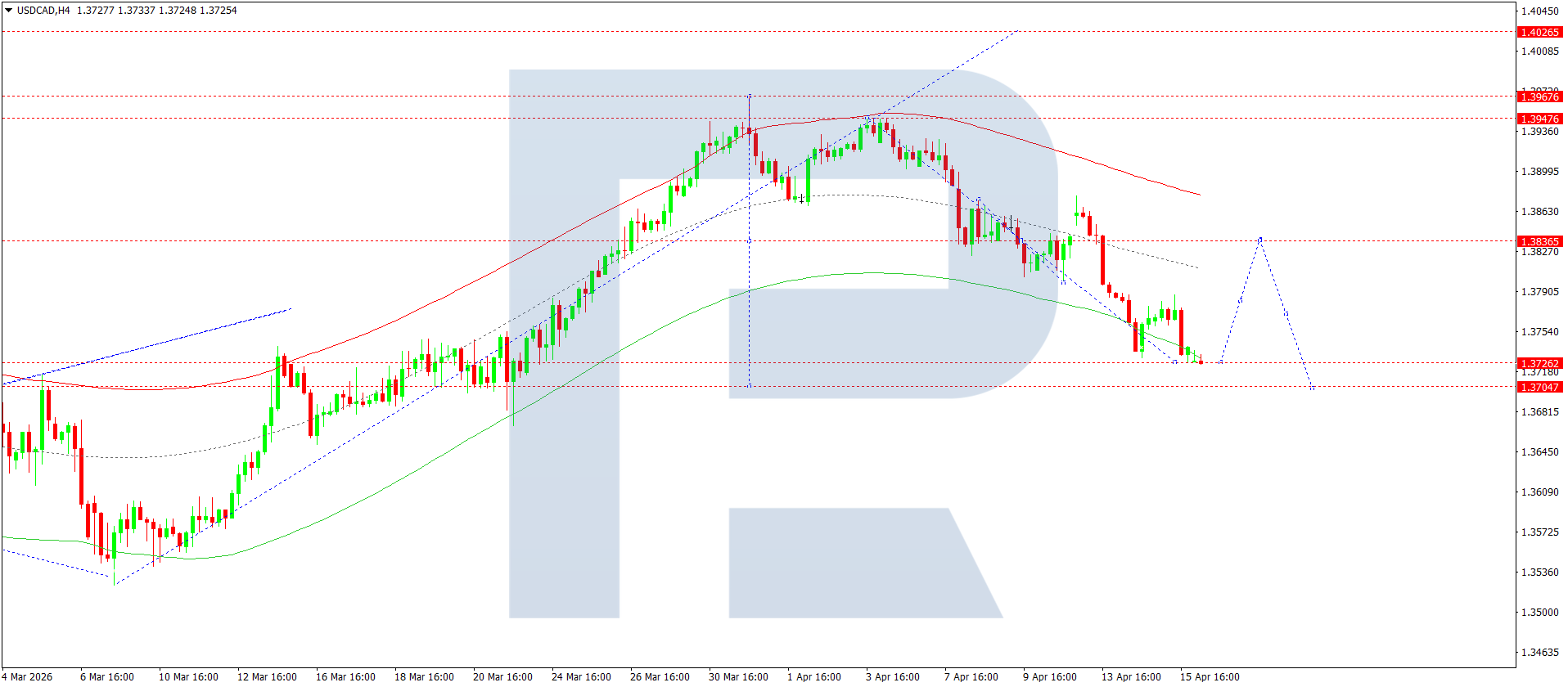 บนกราฟ H4 ของคู่เงิน USDCAD ตลาดได้เสร็จสิ้นโครงสร้างขาลงไปที่ 1.3712 วันนี้ 16 เมษายน 2026 คาดว่าจะเกิดช่วงการแกว่งตัวสะสมเหนือระดับนี้ หากทะลุลง จะเปิดทางให้ปรับตัวลงไปที่ 1.3700 ในทางกลับกัน หากทะลุขึ้น อาจผลักดันราคาไปที่ 1.3865 และอาจต่อเนื่องไปยัง 1.4025