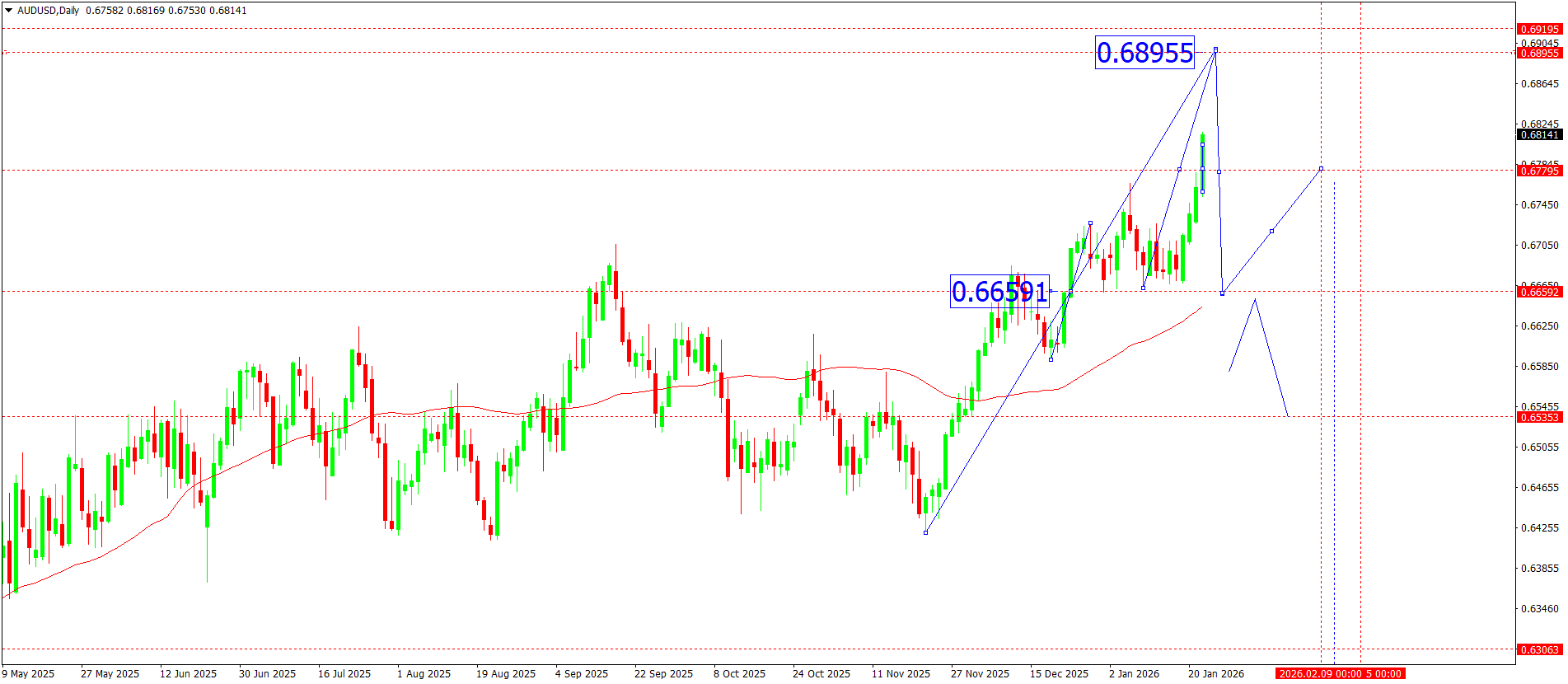 บนกราฟรายวัน AUDUSD ตลาดยังคงพัฒนาโครงสร้างคลื่นขาขึ้น โดยมีเป้าหมายปัจจุบันในโซน 0.6895 การเคลื่อนไหวนี้เป็นอิมพัลส์ช่วงท้าย ทำให้ความน่าจะเป็นของการก่อตัว “ยอดท้องถิ่น” ใกล้แนวต้านดังกล่าวเพิ่มขึ้น