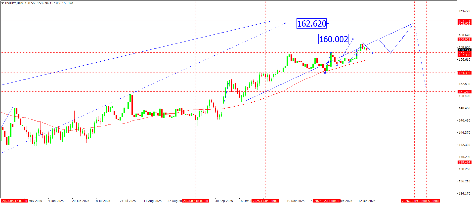 บนกราฟรายวัน USDJPY ตลาดได้แรงรับในโซน 158.30–158.36 จากนั้นเริ่มก่อตัวคลื่นขาขึ้นใหม่ โครงสร้างปัจจุบันชี้ไปที่การเคลื่อนแบบอิมพัลส์สู่แนวต้านใกล้สุดที่ 159.40