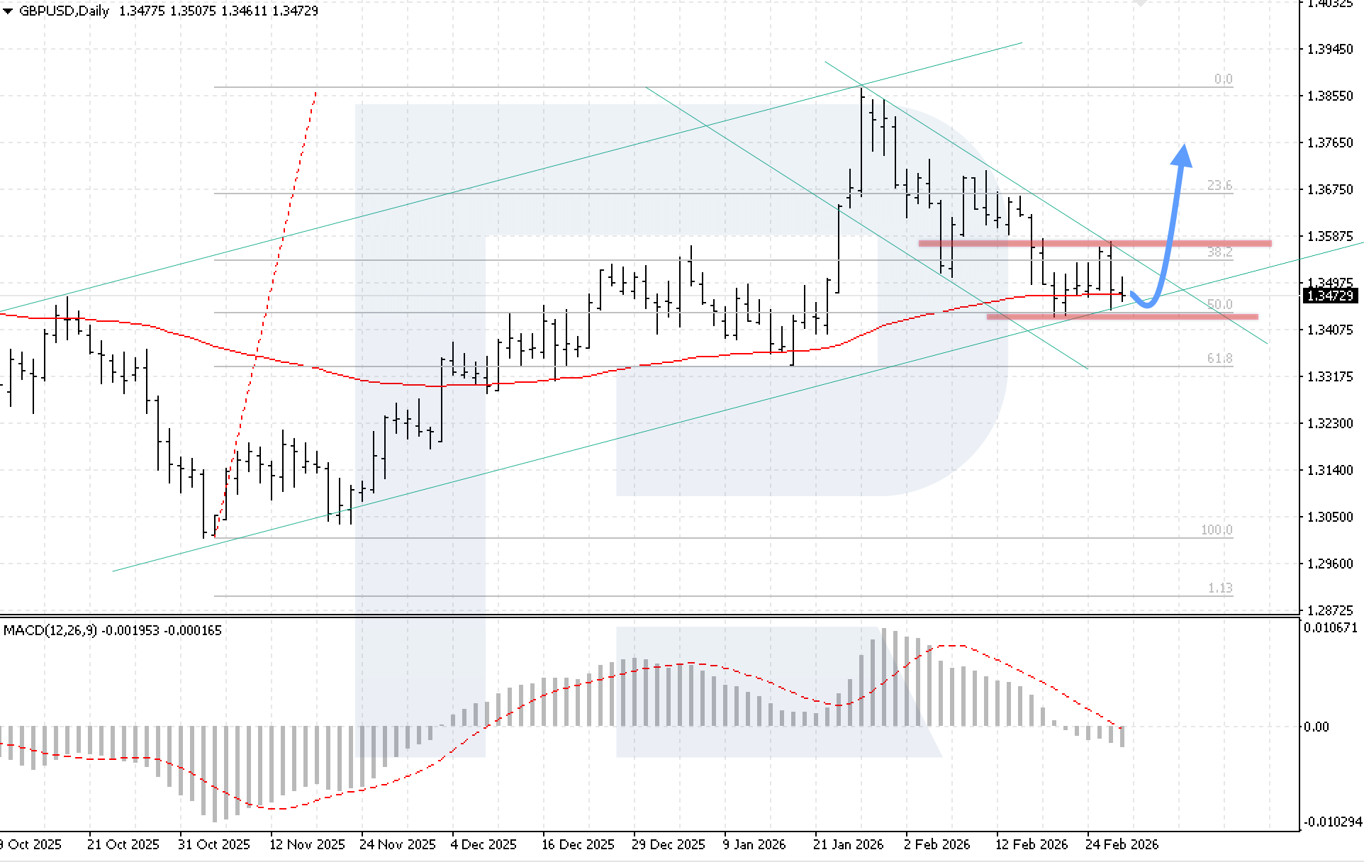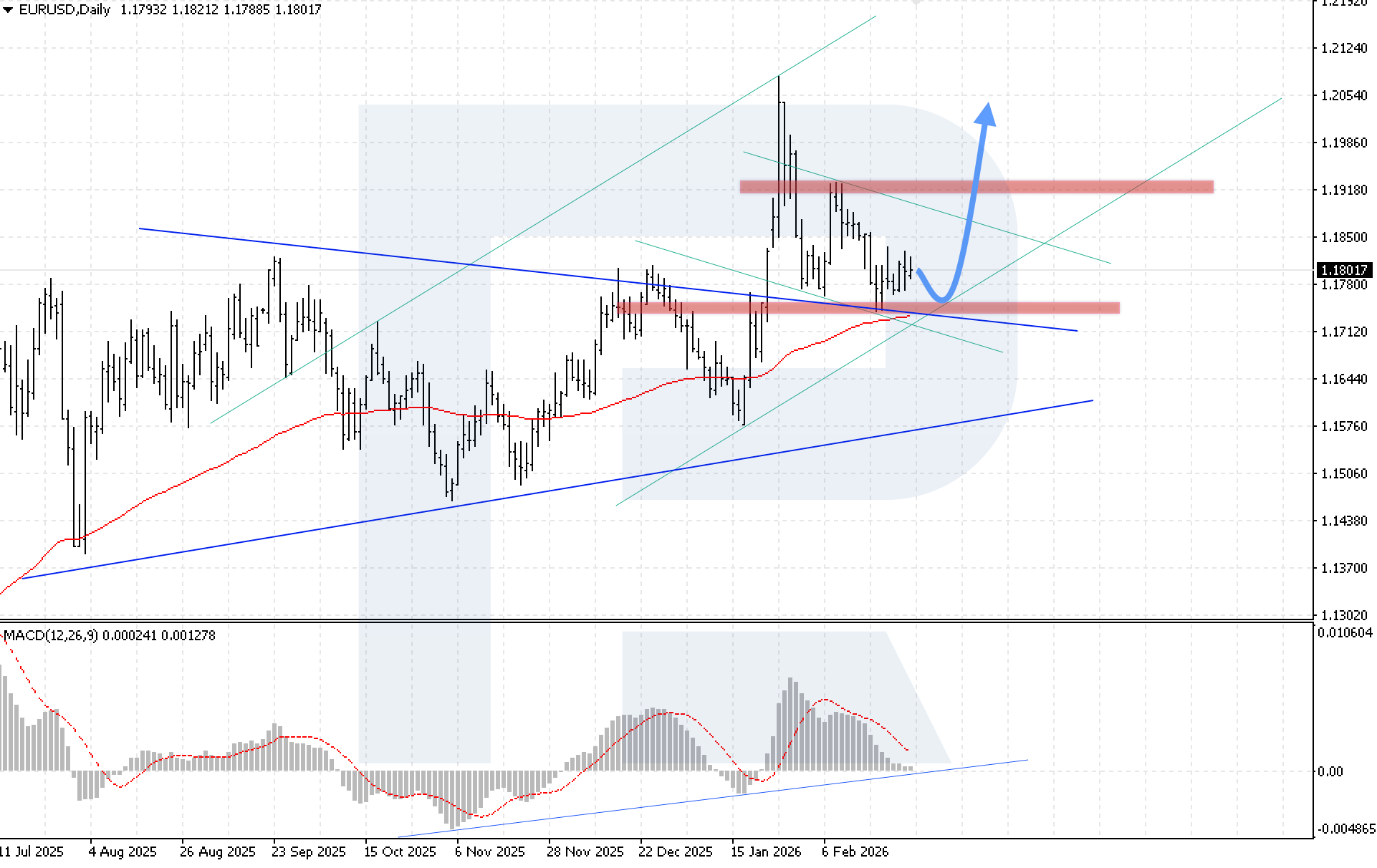 MACD บ่งชี้ระยะการสะสมตัว แต่ค่าชี้วัดได้แตะแนวรับ ซึ่งบ่งชี้ว่าอาจใกล้เกิดการกลับตัว เงื่อนไขสำคัญของสถานการณ์ขาขึ้นในสัปดาห์นี้คือการทรงตัวเหนือ 1.1875 ซึ่งจะยืนยันการทะลุขอบบนของช่องปรับฐาน และเปิดทางให้ EURUSD ฟื้นตัวต่อ