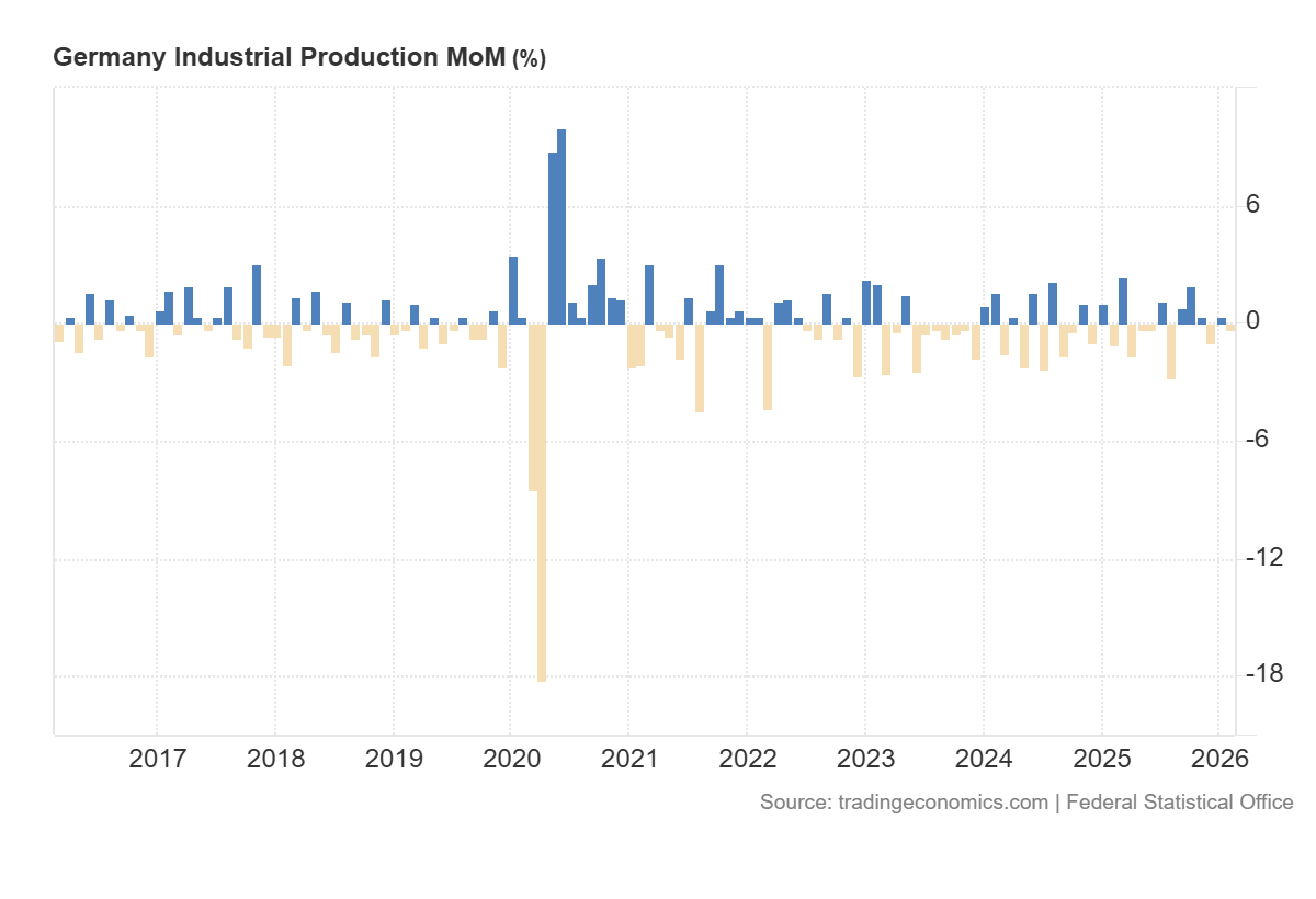 ผลผลิตภาคอุตสาหกรรมของเยอรมนี MoM:https://tradingeconomics.com/germany/industrial-production-mom