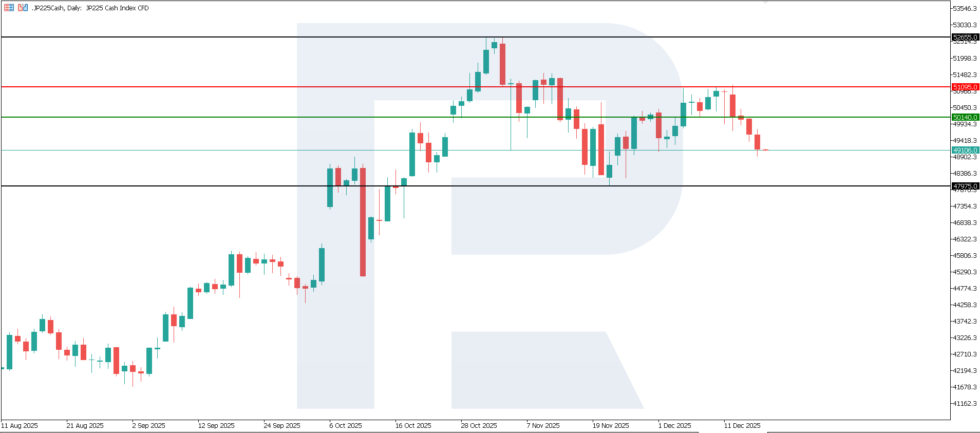 สำหรับดัชนี JP 225 ข้อมูลดังกล่าวถือว่าเป็นปัจจัยบวกโดยรวม ดัชนีนี้ประกอบด้วยบริษัทขนาดใหญ่จำนวนมากที่เกี่ยวข้องกับอุตสาหกรรม เทคโนโลยี ห่วงโซ่อุปทาน และการส่งออก สำหรับบริษัทเหล่านี้ การผลิตที่เพิ่มขึ้นบ่งชี้ว่าอุปสงค์และผลผลิตยังคงแข็งแกร่ง ซึ่งหมายความว่าภาพรวมของกำไรพื้นฐานยังอยู่ในระดับที่ค่อนข้างดี สิ่งนี้สามารถช่วยพยุงดัชนีได้ โดยเฉพาะหากไม่มีสัญญาณการชะลอตัวพร้อมกันจากคำสั่งซื้อหรือข้อมูลการค้าระหว่างประเทศ