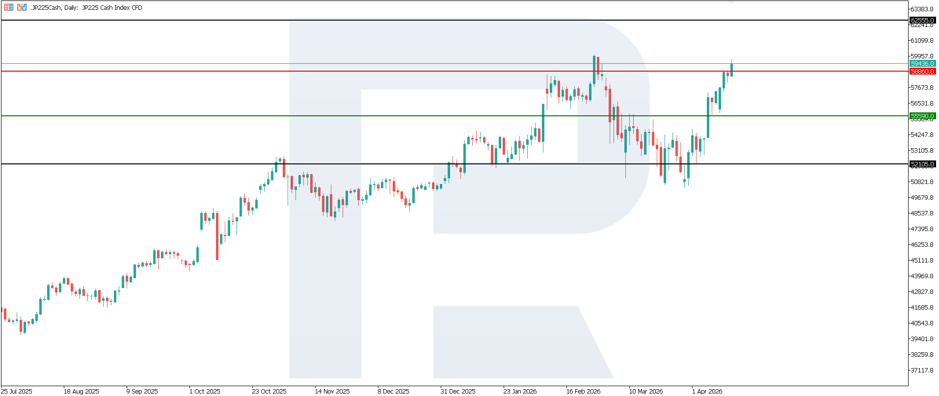 ดัชนี JP 225 ยังคงปรับตัวขึ้นอย่างต่อเนื่องโดยแทบไม่มีการปรับฐาน แนวรับใกล้ที่สุดอยู่ที่ 55,590.0 ขณะที่แนวต้านอยู่ที่ 58,860.0 แนวโน้มปัจจุบันมีโมเมนตัมค่อนข้างแข็งแกร่งและอาจพัฒนาเป็นแนวโน้มระยะกลาง เป้าหมายขาขึ้นถัดไปอยู่ที่ 62,555.0