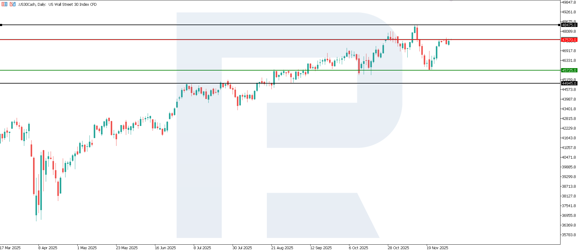 ในสภาวะนี้ นักลงทุนอาจได้ประโยชน์จากการคัดเลือกหุ้นอย่างระมัดระวัง โดยเน้นบริษัทที่สามารถทนทานต่อช่วงอุปสงค์อ่อนตัวและยังคงรักษามาร์จิ้นได้ เป้าหมายด้านบนที่ใกล้ที่สุดของดัชนี US 30 คือบริเวณ 48,475.0
