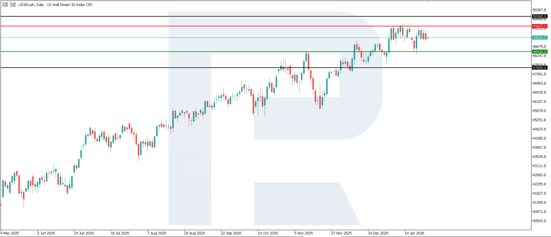 สำหรับดัชนี US 30 ผลกระทบมักจะเห็นได้ชัดกว่าตลาดโดยรวมเล็กน้อย เนื่องจากมีสัดส่วนของบริษัทวัฏจักรขนาดใหญ่สูง รวมถึงกลุ่มอุตสาหกรรมและภาคการเงิน ซึ่งมีความอ่อนไหวต่อภาวะเศรษฐกิจและระดับอัตราดอกเบี้ย ในสถานการณ์นี้ สัญญาณการเติบโตของภาคการผลิตถือเป็นปัจจัยเชิงบวกในระดับปานกลางต่อ US 30 อย่างไรก็ตาม เนื่องจากข้อมูลออกมาตรงตามที่คาด ผลกระทบจึงมีแนวโน้มจำกัด และอาจถูกหักล้างอย่างรวดเร็วด้วยทิศทางของอัตราผลตอบแทนพันธบัตรและความคาดหวังเกี่ยวกับนโยบายของธนาคารกลางสหรัฐฯ