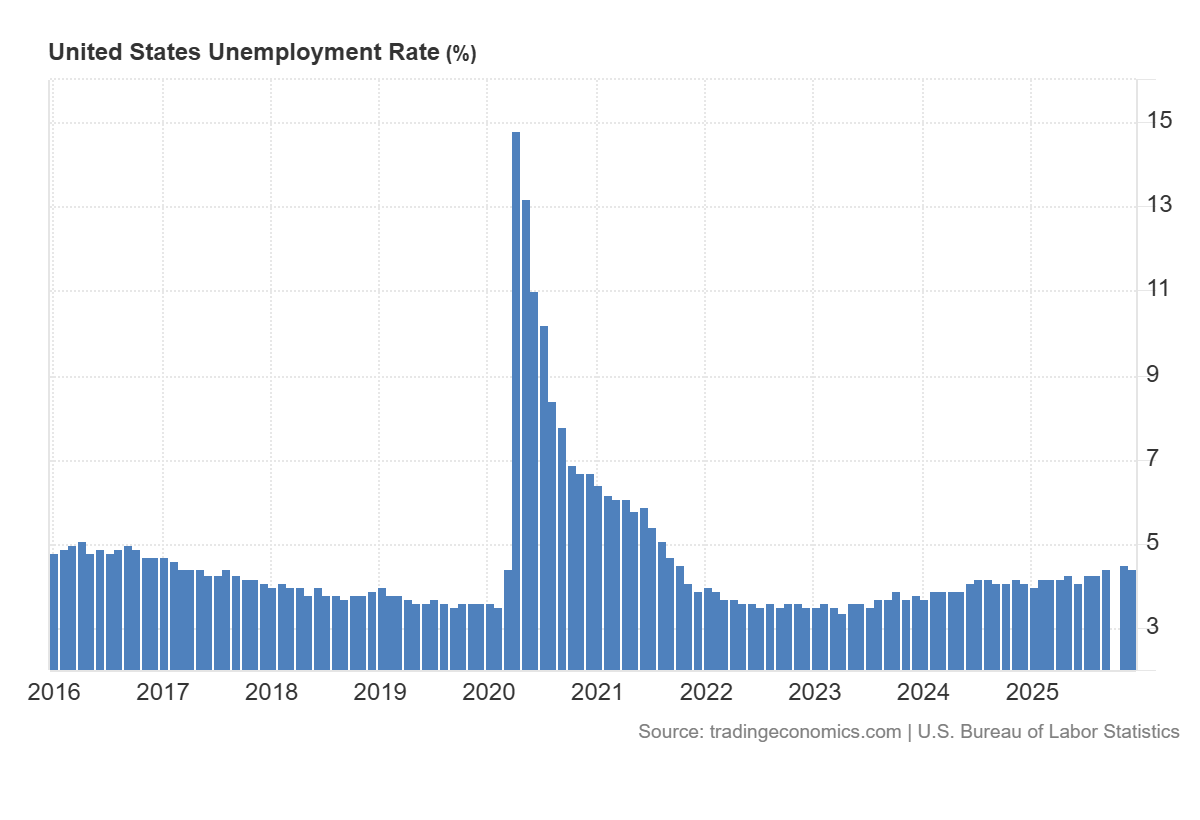 อัตราการว่างงานของสหรัฐฯ ลดลงสู่ระดับ 4.4% เทียบกับคาดการณ์ที่ 4.5% และค่าก่อนหน้าที่ 4.5% ซึ่งบ่งชี้ว่าตลาดแรงงานแข็งแกร่งกว่าที่คาดเล็กน้อย สำหรับตลาดหุ้น ข่าวนี้มีผลกระทบสองด้าน ด้านหนึ่ง อัตราการว่างงานที่ลดลงสะท้อนถึงอุปสงค์ในระบบเศรษฐกิจที่มีความยืดหยุ่นมากขึ้น และลดความเป็นไปได้ของการทรุดตัวอย่างรุนแรงของผลประกอบการบริษัทในไตรมาสถัดไป ซึ่งโดยทั่วไปจะสนับสนุนความต้องการรับความเสี่ยงของนักลงทุน