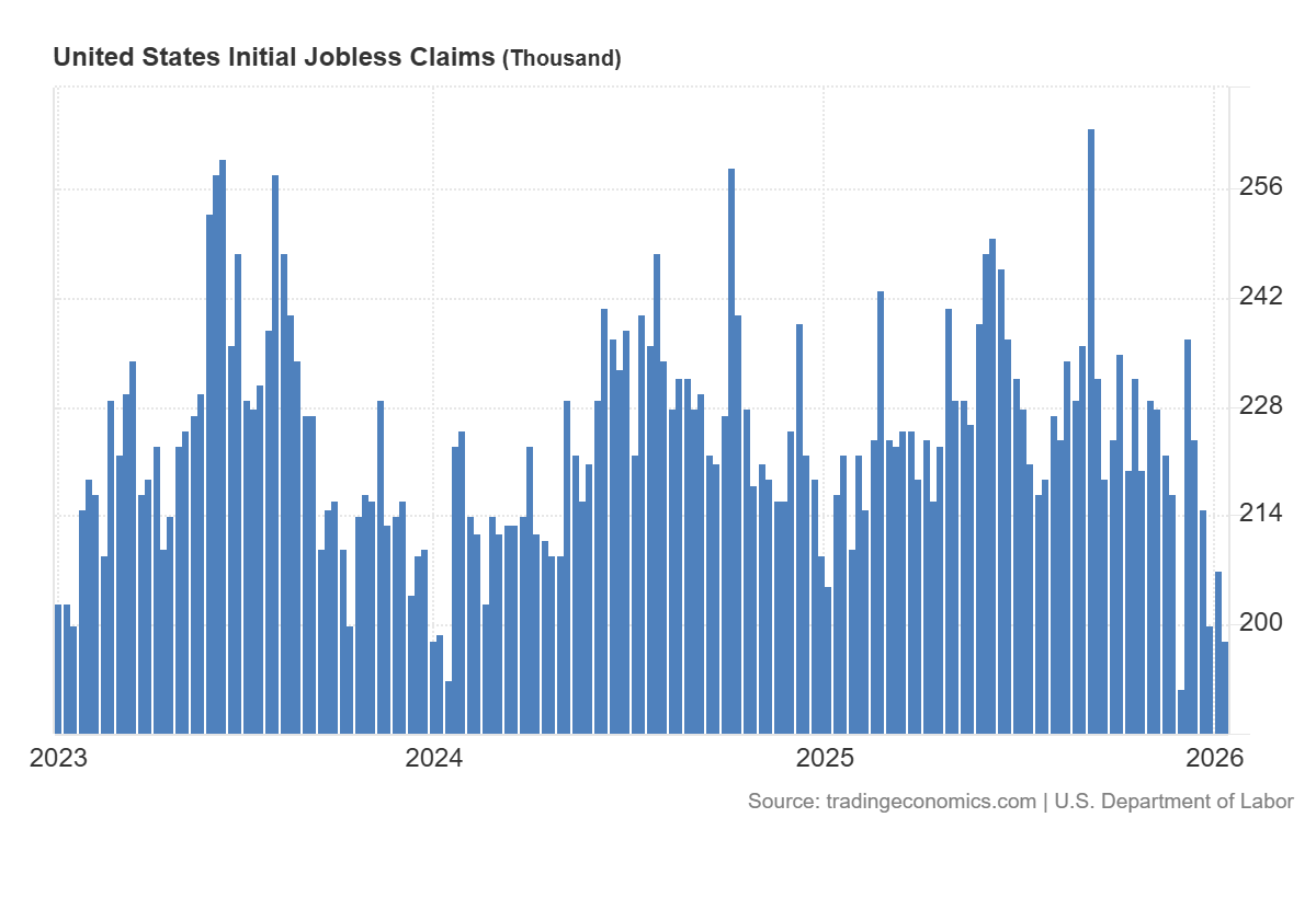 จำนวนผู้ขอรับสวัสดิการว่างงานครั้งแรกของสหรัฐฯ อยู่ที่ 198,000 ราย ต่ำกว่าที่ตลาดคาดไว้ที่ 215,000 ราย และต่ำกว่าค่าก่อนหน้าที่ 207,000 ราย ซึ่งบ่งชี้ว่าตลาดแรงงานมีความแข็งแกร่งกว่าที่คาดการณ์ไว้ สำหรับตลาดหุ้น การประกาศข้อมูลลักษณะนี้โดยทั่วไปสะท้อนถึงการเติบโตทางเศรษฐกิจในเชิงบวกปานกลาง เนื่องจากจำนวนผู้ขอรับสวัสดิการที่ลดลงบ่งชี้ว่าการเลิกจ้างยังอยู่ในระดับจำกัด สภาวะการจ้างงานมีเสถียรภาพ และอุปสงค์ของผู้บริโภค รวมถึงรายได้ของภาคธุรกิจมีฐานที่แข็งแรงขึ้น