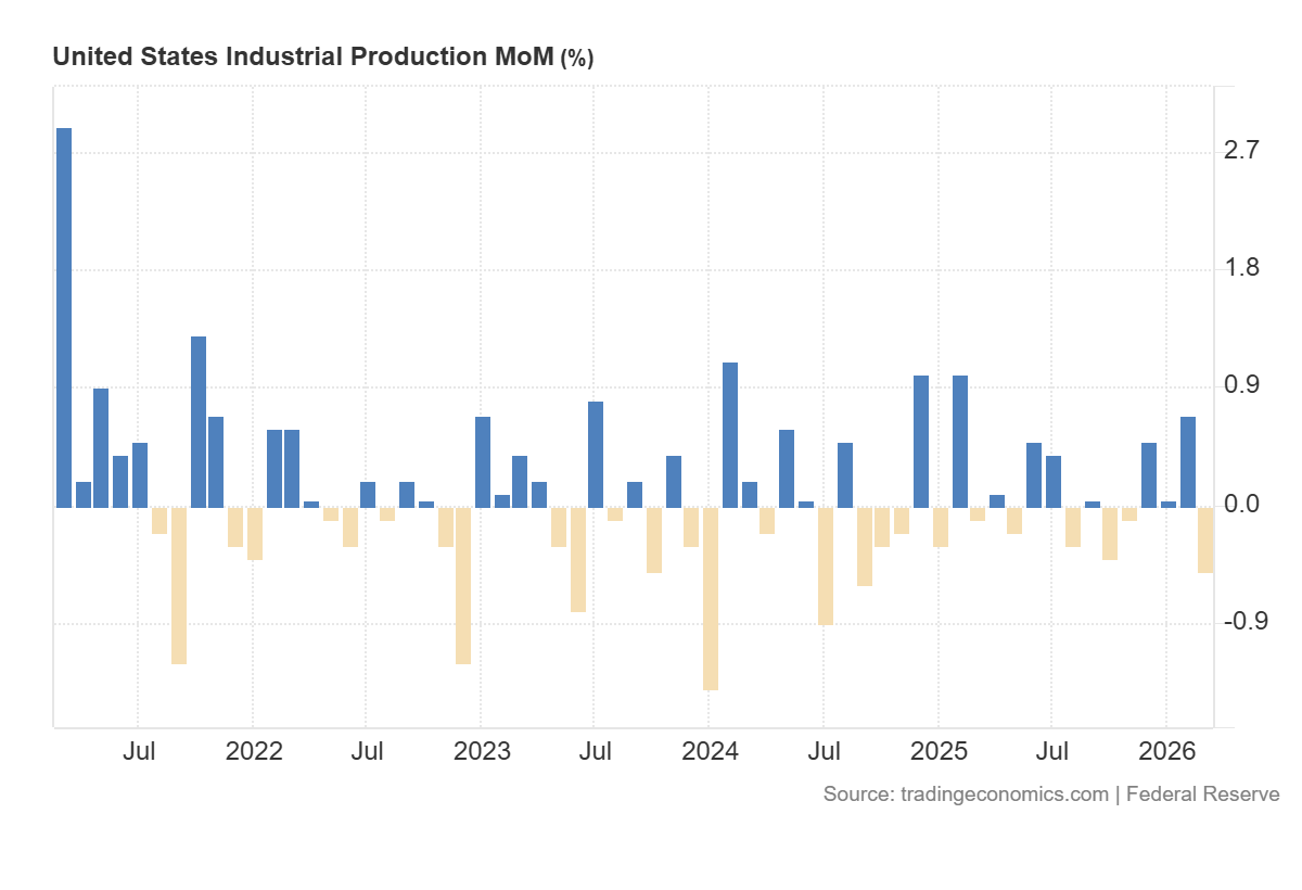 ผลผลิตภาคอุตสาหกรรมของสหรัฐรายเดือน:https://tradingeconomics.com/united-states/industrial-production-mom