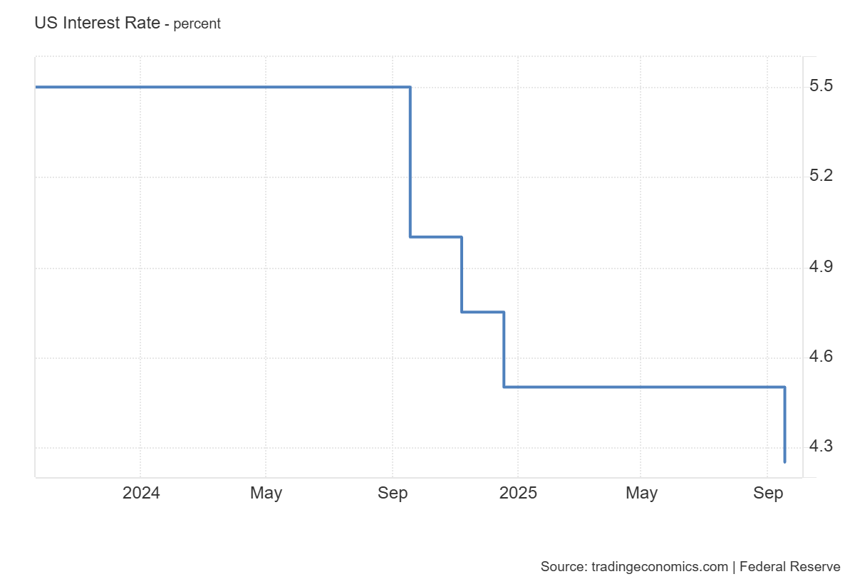 การตัดสินใจของเฟดในการปรับลดอัตราดอกเบี้ยนโยบายจาก 4.50% เหลือ 4.25% ตามที่ตลาดคาดการณ์ไว้ ส่งสัญญาณสำคัญต่อการเงินของสหรัฐ การลดดอกเบี้ยสะท้อนถึงความตั้งใจของเฟดในการสนับสนุนกิจกรรมทางเศรษฐกิจท่ามกลางการชะลอตัวของ GDP และความอ่อนแอในตลาดแรงงาน อัตราดอกเบี้ยที่ต่ำลงช่วยลดต้นทุนการกู้ยืมของภาคธุรกิจและครัวเรือน กระตุ้นการลงทุนและการบริโภค อย่างไรก็ตาม คำแถลงของเจอโรม พาวเวลล์ยังคงชี้ให้เห็นถึงความเสี่ยงด้านเงินเฟ้อที่ต่อเนื่อง โดยมีส่วนหนึ่งมาจากนโยบายภาษีศุลกากร ซึ่งทำให้ความเชื่อมั่นของนักลงทุนไม่พุ่งสูงเกินไป