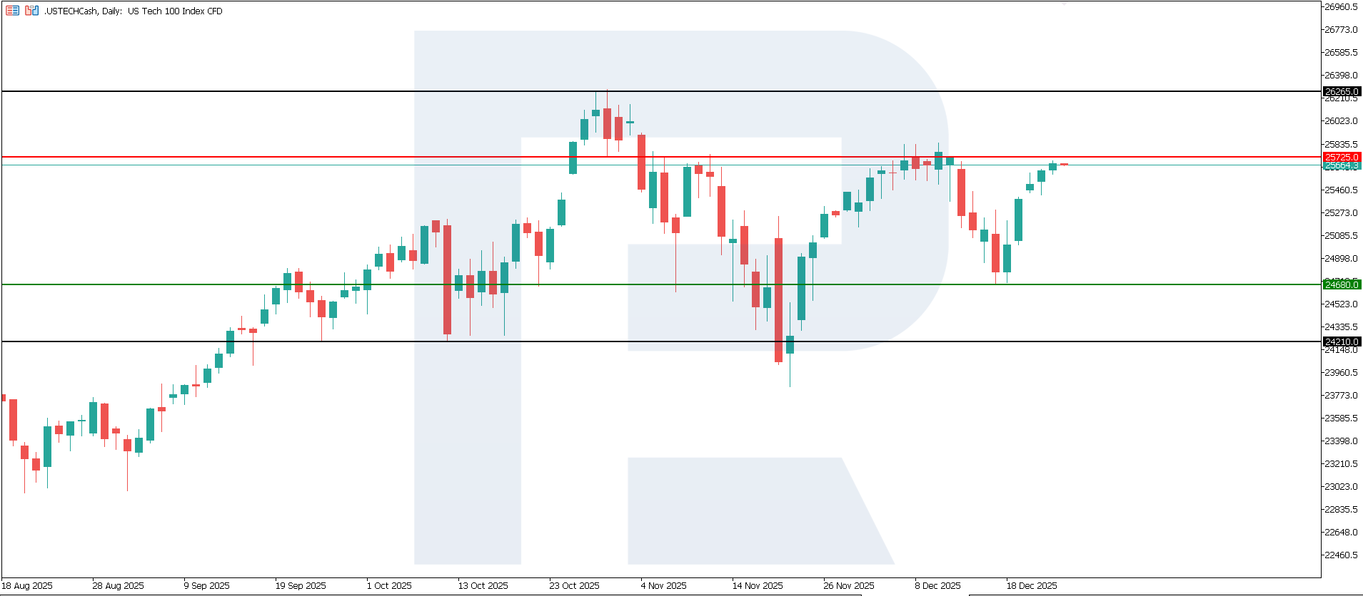 เป้าหมายขาขึ้นที่ใกล้ที่สุดของดัชนี US Tech อยู่ที่ระดับ 26,265.0