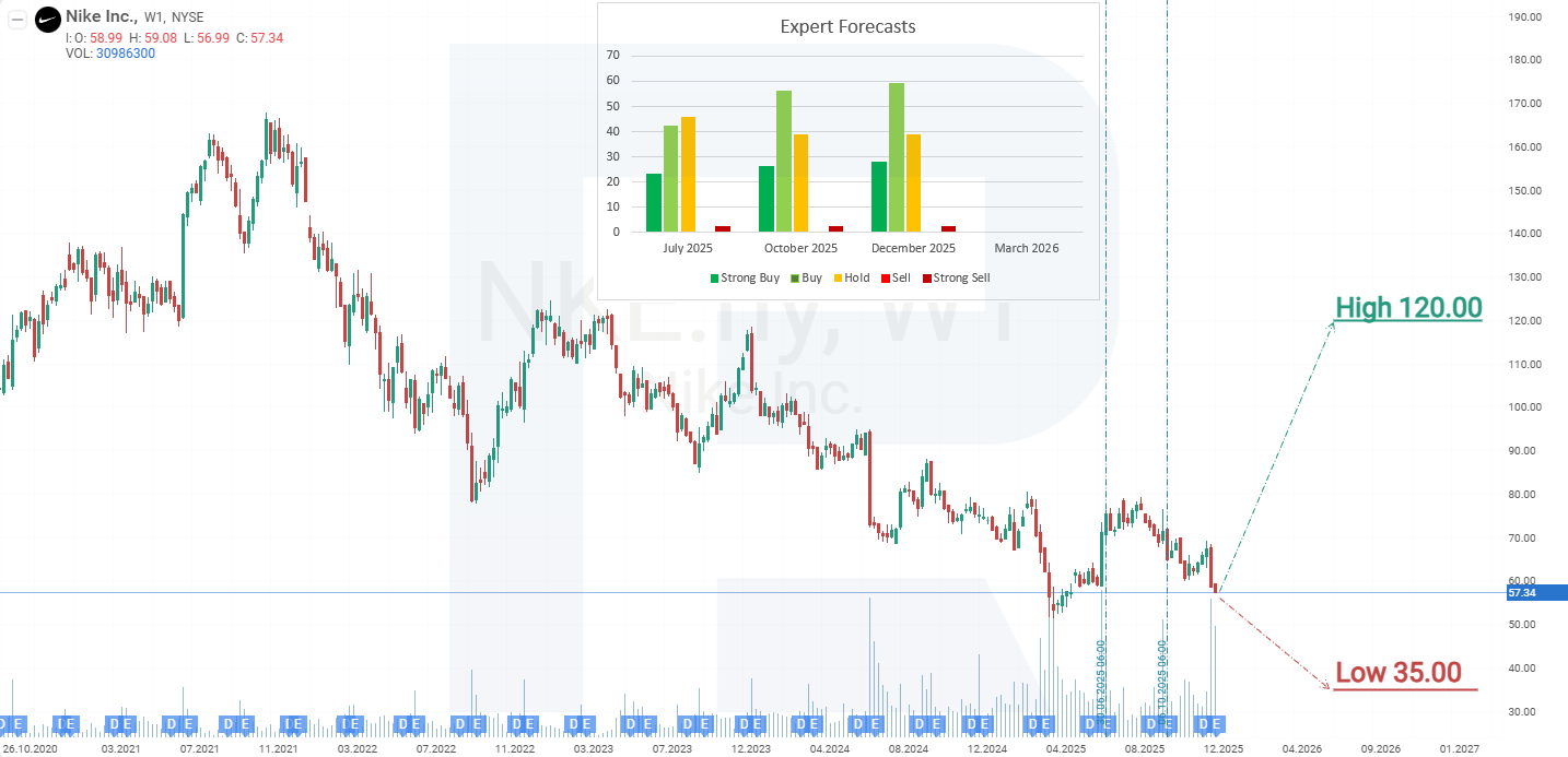 ในเชิงการเงิน Nike ยังคงมีความยืดหยุ่น บริษัทถือ net cash ภาระหนี้ปานกลาง และธุรกิจยังทำกำไรได้ — แม้ในไตรมาสที่อ่อนแอ อย่างไรก็ตาม ที่ราคาปัจจุบันราว 59 ดอลลาร์สหรัฐ หุ้นดูมีราคาแพง ตัวคูณอยู่ในระดับสูง: P/E ~35, EV/EBITDA สูงกว่า 20, P/FCF - 31 ซึ่งหมายความว่าตลาดได้สะท้อนการฟื้นตัวของมาร์จิ้นและการกลับมาสู่การเติบโตอย่างมั่นใจไว้แล้ว การซื้อหุ้น NKE จะมีเหตุผลก็ต่อเมื่อเชื่อว่าปัญหาปัจจุบันเกี่ยวกับจีน ภาษีศุลกากร และมาร์จิ้น เป็นเรื่องชั่วคราว และบริษัทสามารถกลับไปสู่ความสามารถทำกำไรที่สูงขึ้นและกระแสเงินสดอิสระที่แข็งแกร่งในอีกไม่กี่ปีข้างหน้า