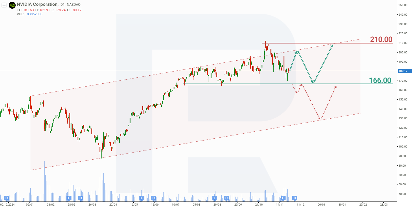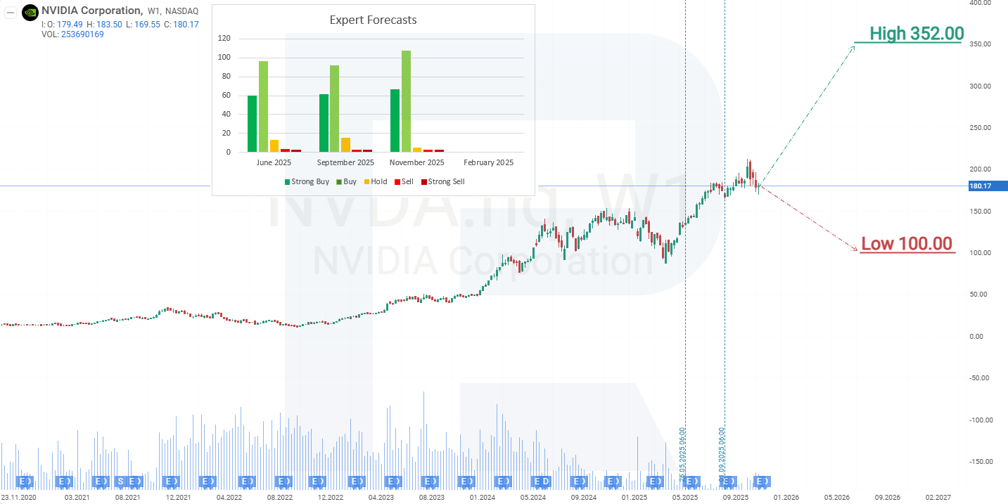 ฉากทัศน์ฐาน (base-case) สำหรับหุ้น NVIDIA คาดการณ์ว่าราคาจะปรับขึ้นไปทดสอบแนวต้านราว 200 ดอลลาร์สหรัฐ ก่อนจะมีการปรับฐานระยะสั้นลงสู่แนวรับใกล้ 166 ดอลลาร์สหรัฐ โดยคำนึงถึงโครงการซื้อหุ้นคืนในวงกว้างของบริษัท สัญญาระยะยาวสำหรับการจัดหาชิปสำหรับระบบ AI และสถานะผู้นำตลาดที่โดดเด่น ความสนใจของนักลงทุนต่อหุ้น NVIDIA มีแนวโน้มจะยังคงแข็งแกร่ง ดังนั้น การดีดตัวจากบริเวณแนวรับ 166 ดอลลาร์สหรัฐอาจเปิดทางให้ราคากลับมาฟื้นตัวขึ้นสู่บริเวณ 210 ดอลลาร์สหรัฐอีกครั้ง