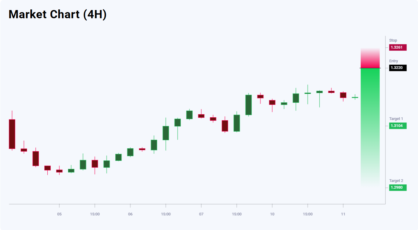 มุมมองของตลาดต่อ GBPUSD แสดงอคติขาลง – 62% เทียบกับ 38% อัตราส่วนความเสี่ยงต่อผลตอบแทนมากกว่า 1:5 กำไรที่เป็นไปได้คือ 116 จุดสำหรับเป้าหมายแรก และ 240 จุดสำหรับเป้าหมายที่สอง โดยขาดทุนจำกัดไว้ที่ 41 จุด