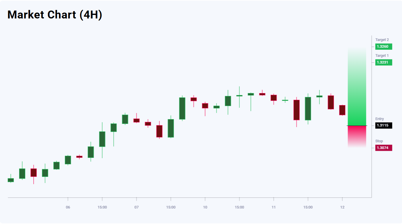 มุมมองของตลาดต่อ GBPUSD แสดงอคติขาขึ้น – 53% เทียบกับ 47% อัตราส่วนความเสี่ยงต่อผลตอบแทนมากกว่า 1:3 กำไรที่เป็นไปได้คือ 116 จุดสำหรับเป้าหมายแรก และ 145 จุดสำหรับเป้าหมายที่สอง โดยขาดทุนจำกัดไว้ที่ 41 จุด