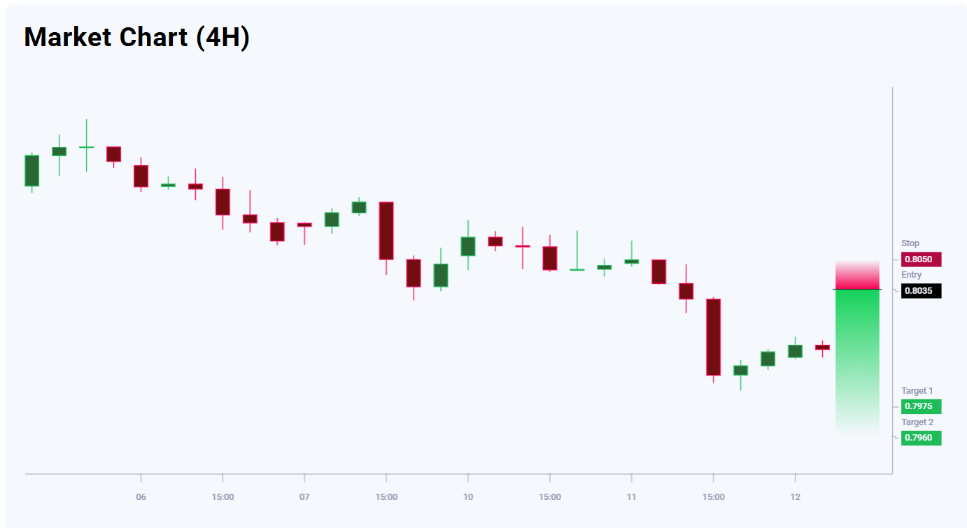 คู่เงิน USDCHF แสดงให้เห็นถึงความผันผวนของราคา โดยมีแนวโน้มว่ากำลังสร้างรูปแบบ “จุดสูงสุด” (Top) ดังนั้นกลยุทธ์ที่แนะนำคือ “ขายหลังจากการปรับขึ้น” พร้อมตั้งจุดหยุดขาดทุนที่แคบ โดยคาดว่าแรงขายจะกลับมาอีกครั้ง ระดับแนวต้านหลักอยู่ที่ 0.8035 แนวคิดการเทรด USDCHF วันนี้แนะนำให้ตั้งคำสั่งขายแบบรอ (Sell Limit)